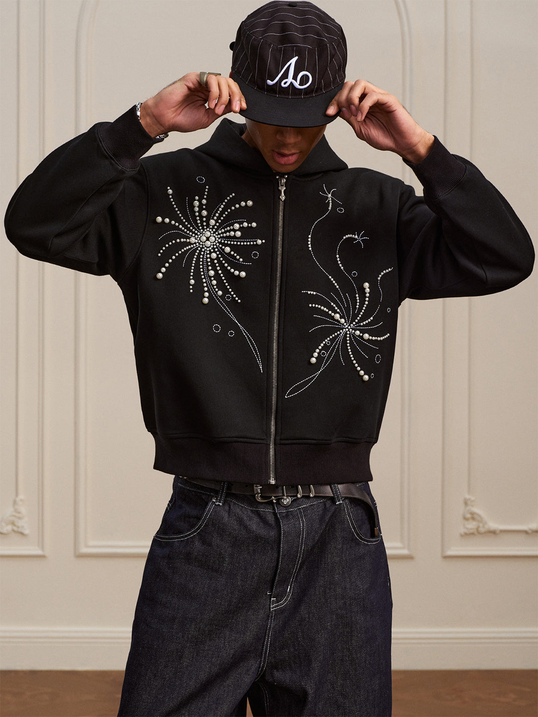 YADcrew | Fireworks Pearl Embroidered Hooded Sweatshirt コンテンツにスキップ