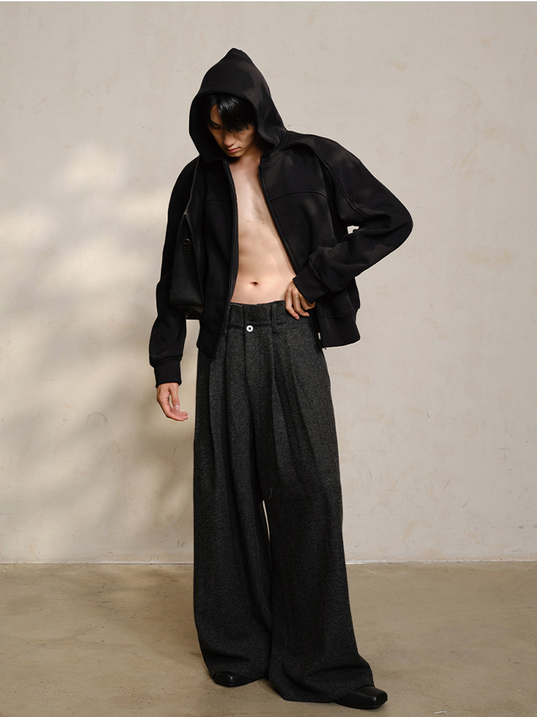 Designed with double pleats at the waist, the folds are fixed at the waistband to create a refined silhouette, enhancing elegance.