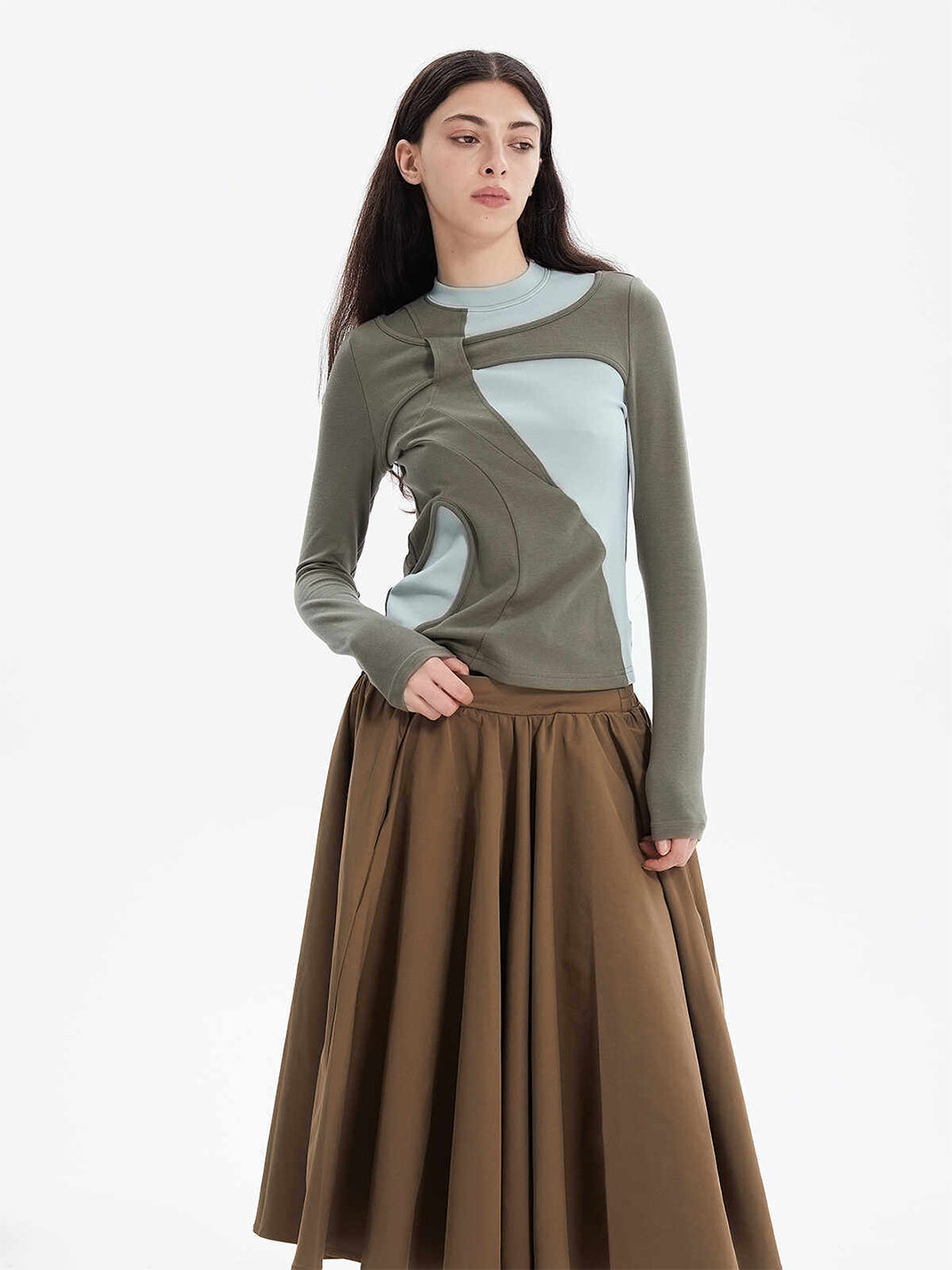 The color-blocked curved paneling and double-layered design at the chest, combined with the fitted silhouette, flatter the figure. The quilted cashmere fabric is not only soft and skin-friendly but also has a certain degree of elasticity.