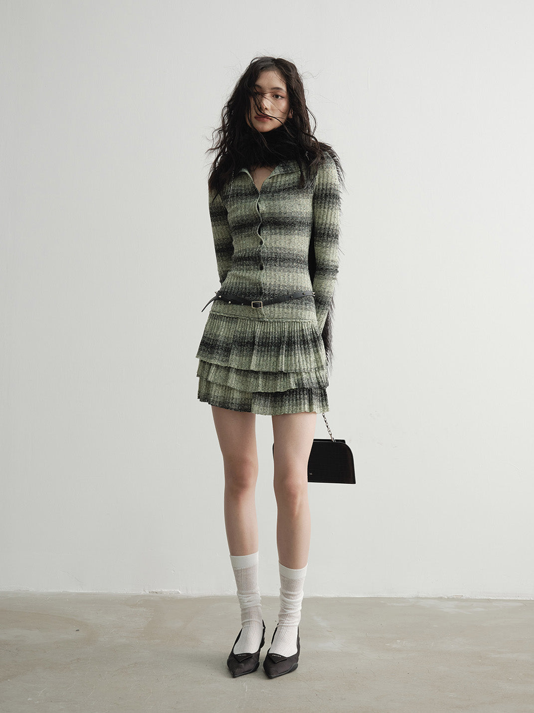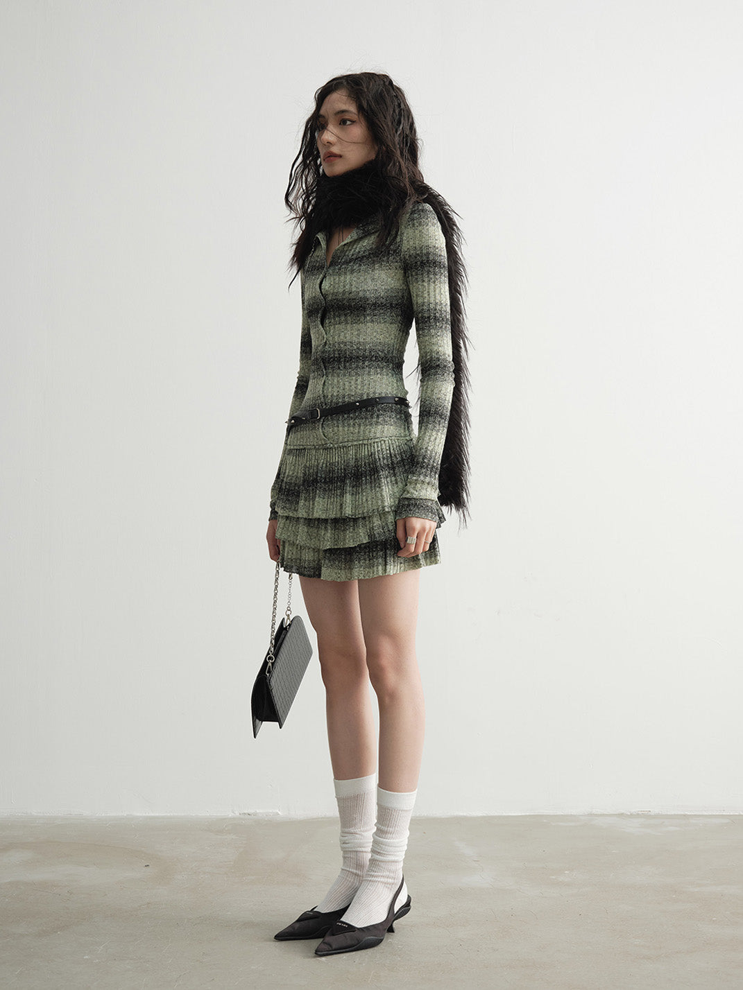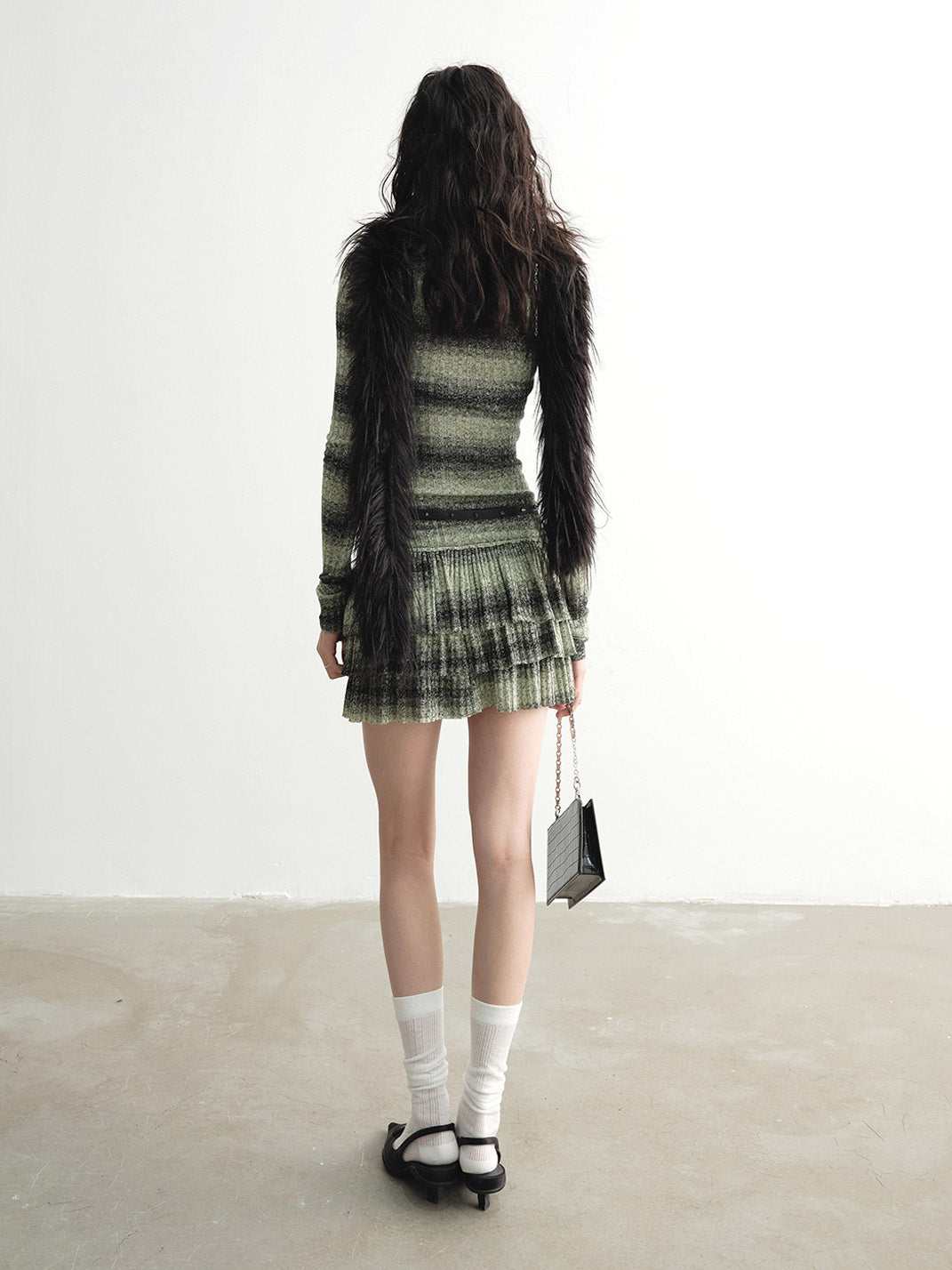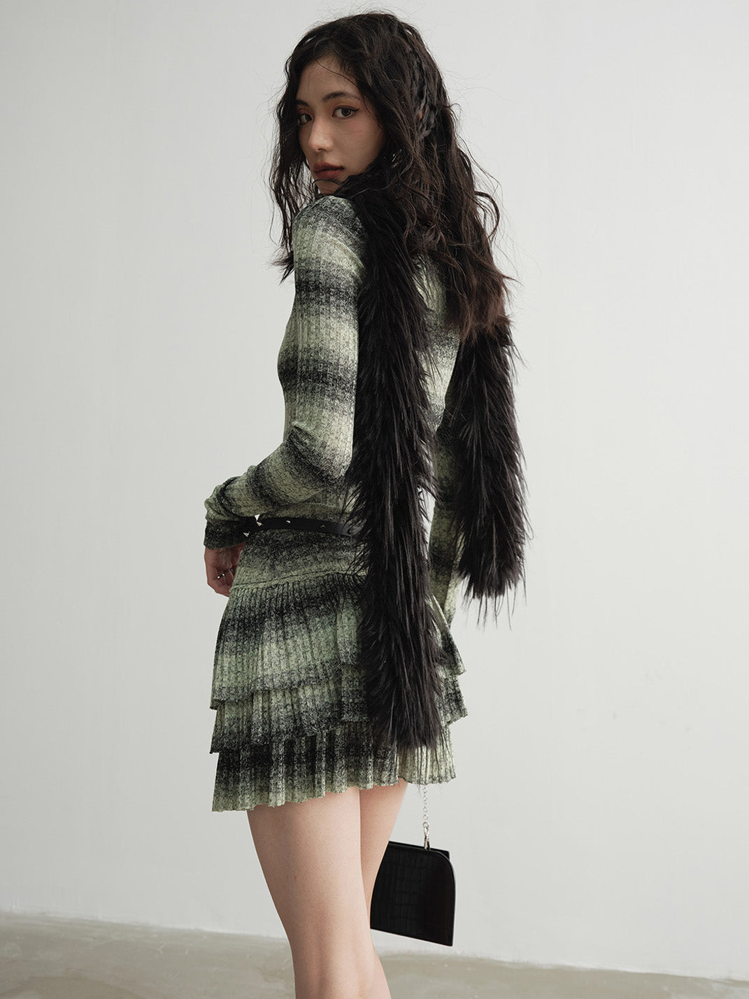 Jnylon Studios | Faux Two-Piece Striped Ruffle Knit Dress