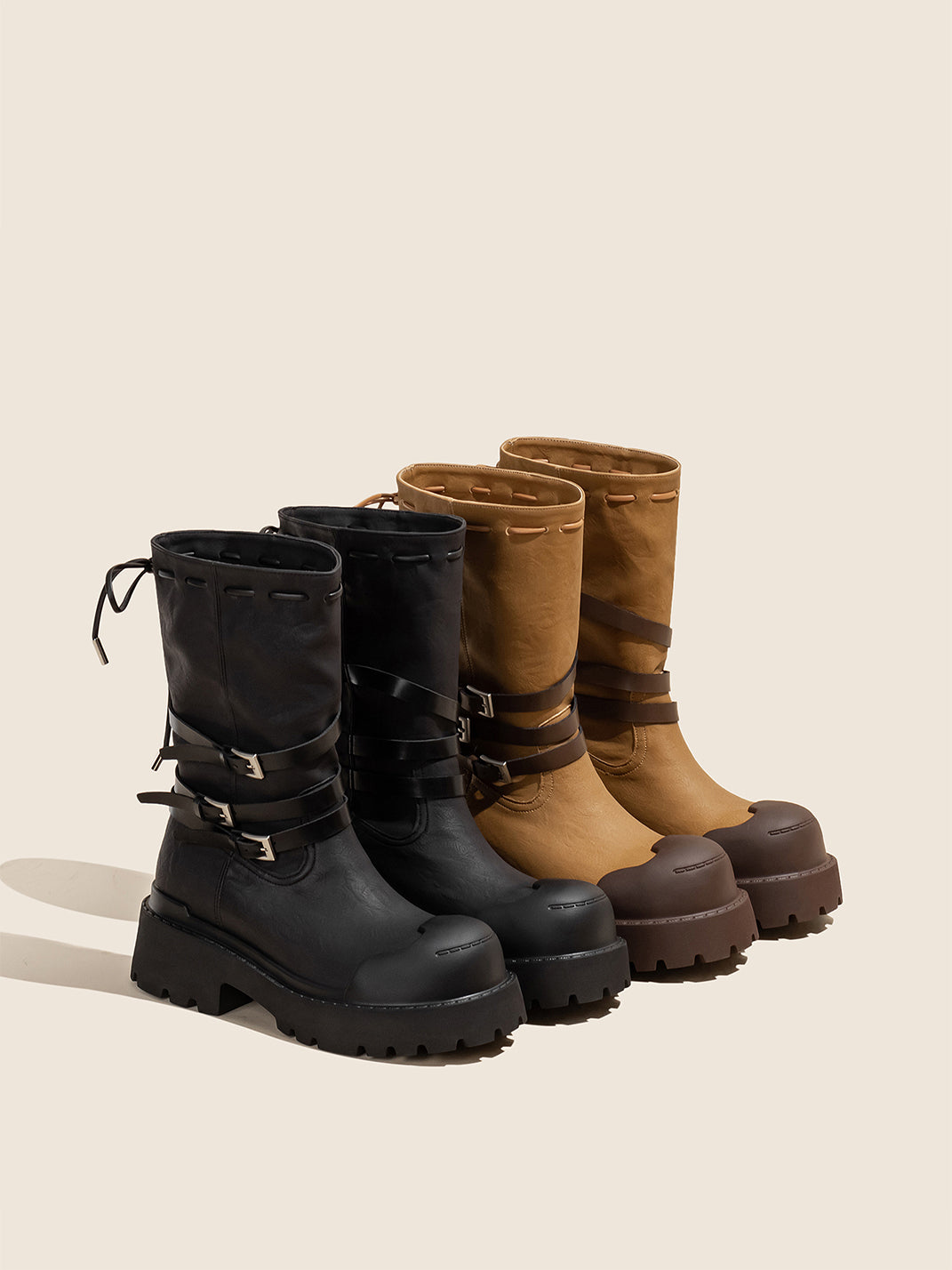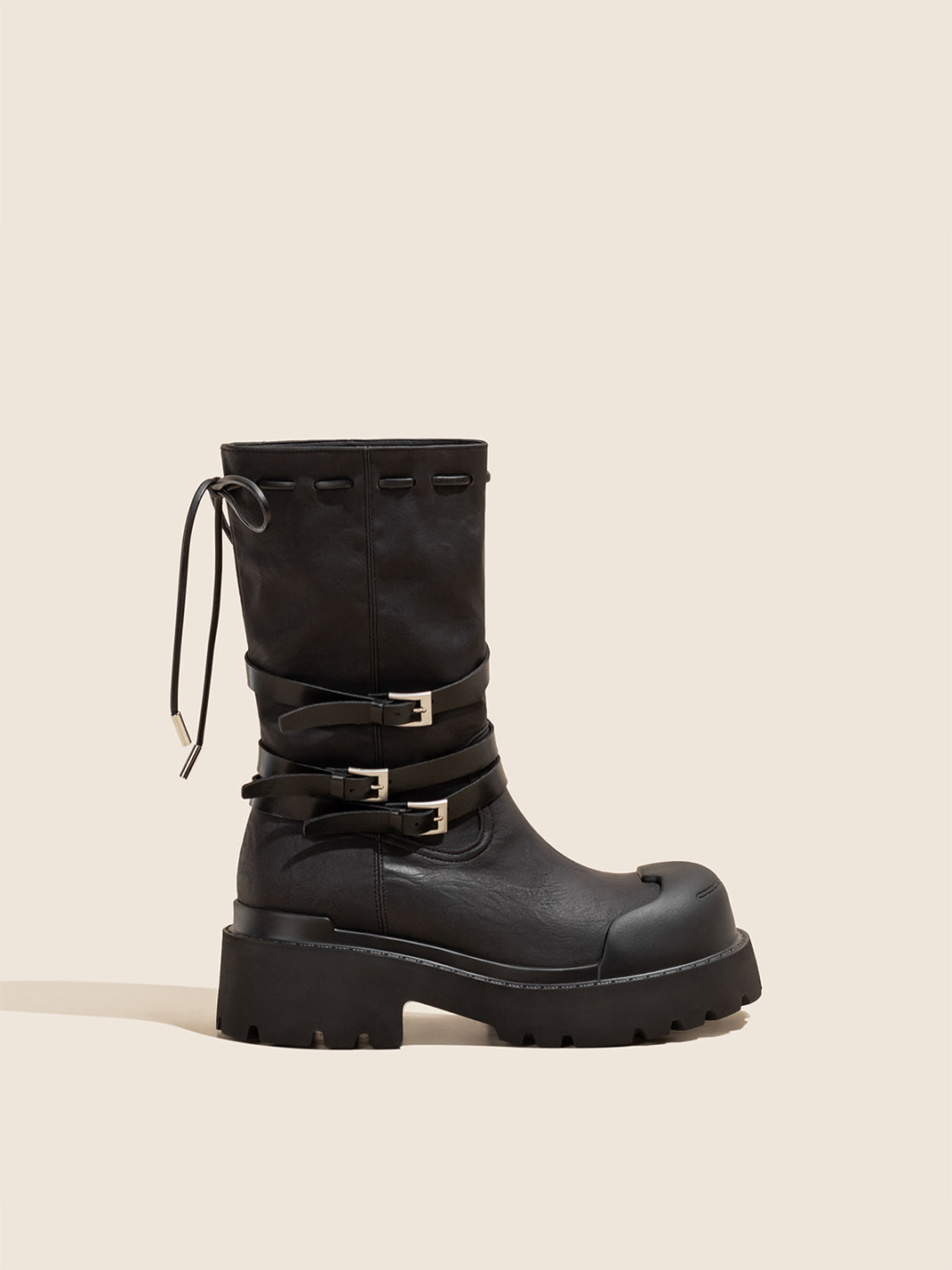 OLDMEOW | Buckle Strap Drawstring Platform Boots