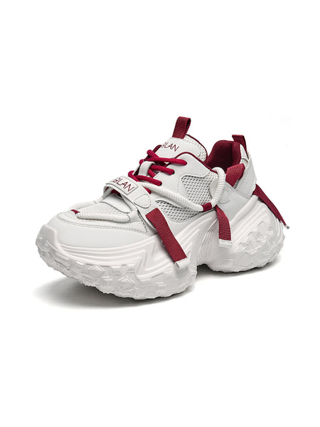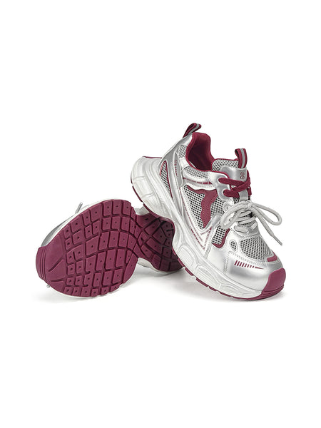 TRUMPPIPE | Burgundy Layered Retro Runner Sneakers