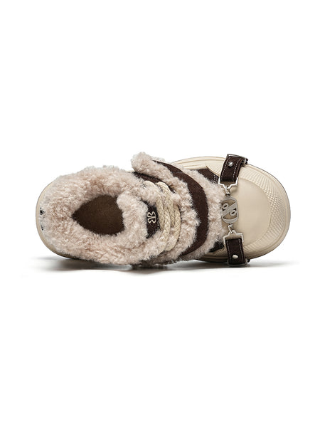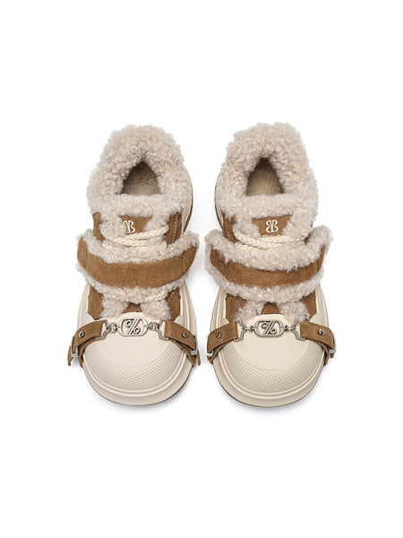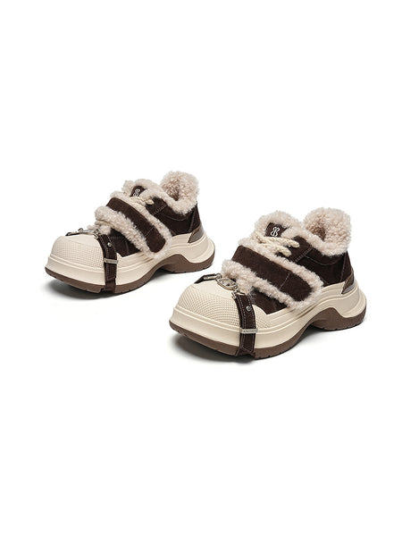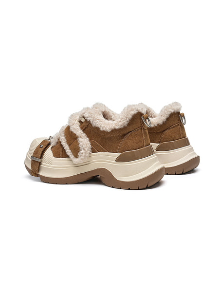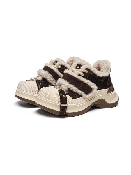 EBLAN | Coffee Shearling Strap Platform Sneakers
