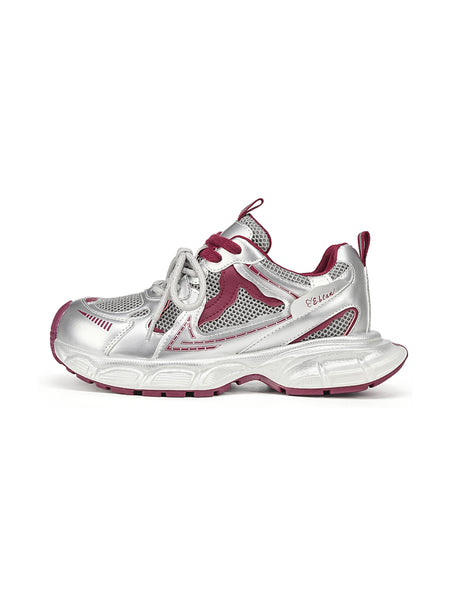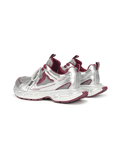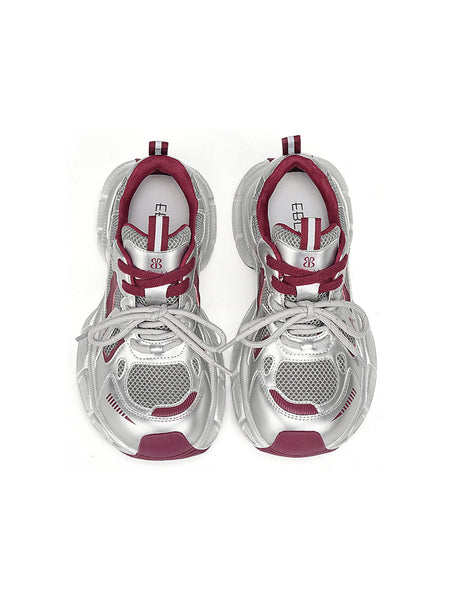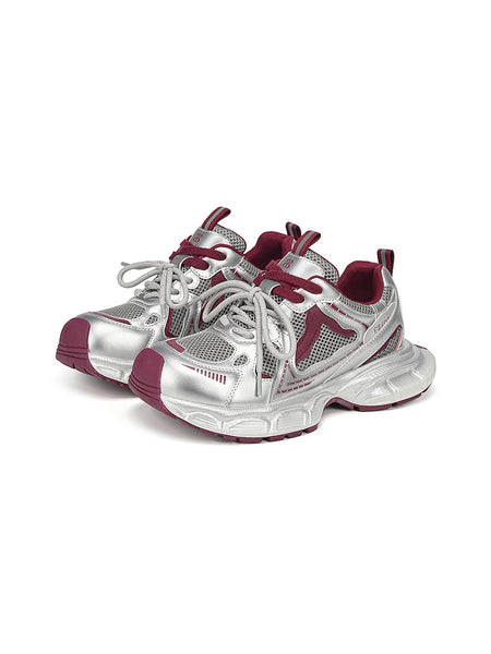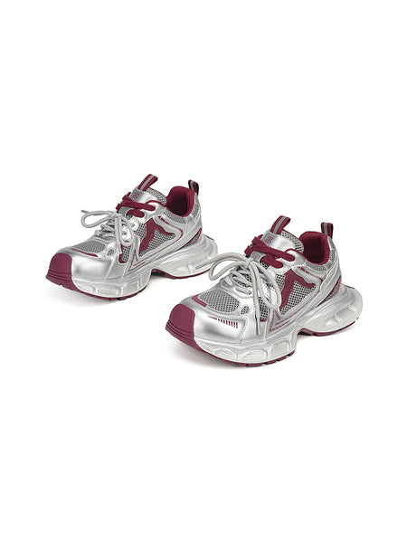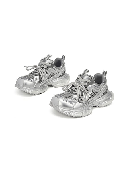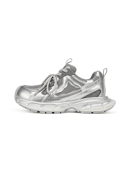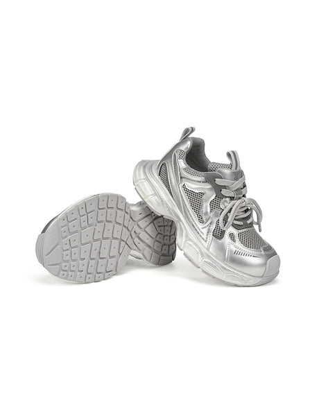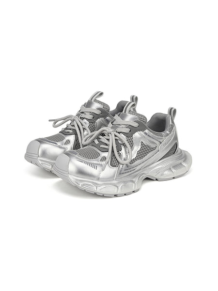 TRUMPPIPE | Silver Layered Retro Runner Sneakers