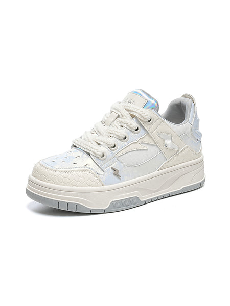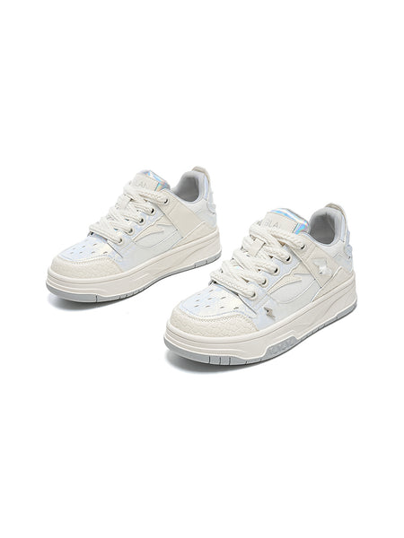 TRUMPPIPE | White Mesh Platform Low-Top Sneakers