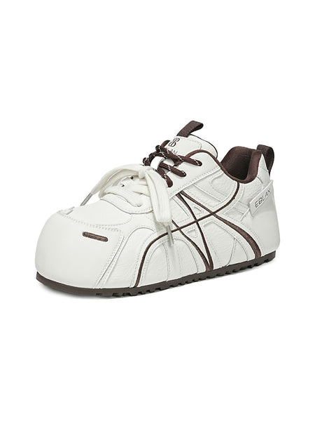 EBLAN | Beige Coffee Panel Trainer Sneakers