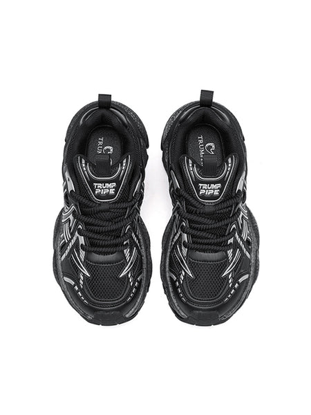TRUMPPIPE | Black Chunky Tech Runner Sneakers