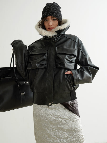 Jnylon Studios | Faux Two-piece PU Leather Jack...