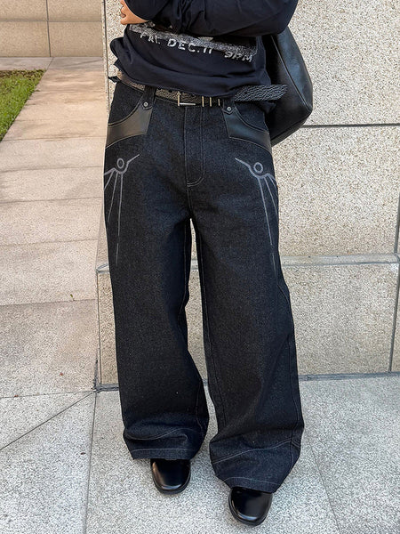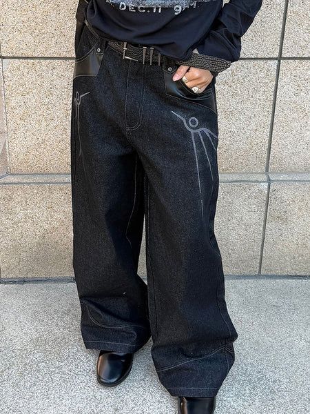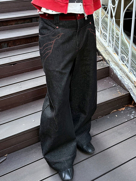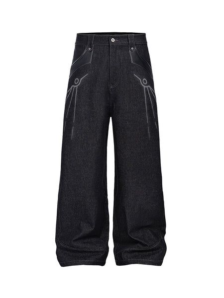 Esaias | Phoenix Graphic Wide-Leg Raw Jeans
