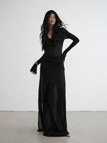 Jnylon Studios | Knitted Faux Two-Piece Hooded ...