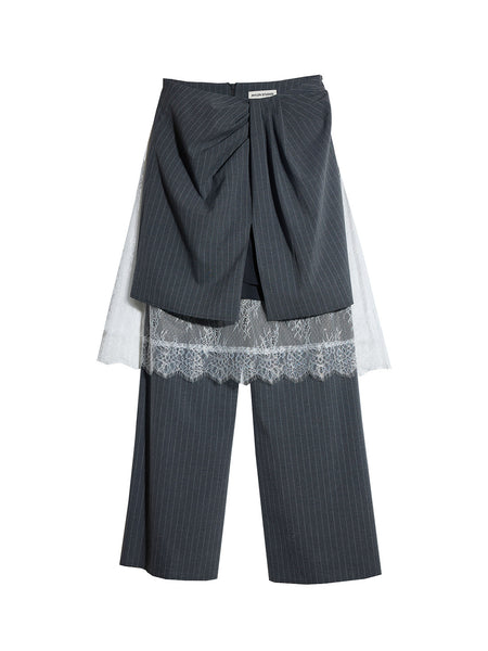 Jnylon Studios | Gray Striped Skirt And Trousers