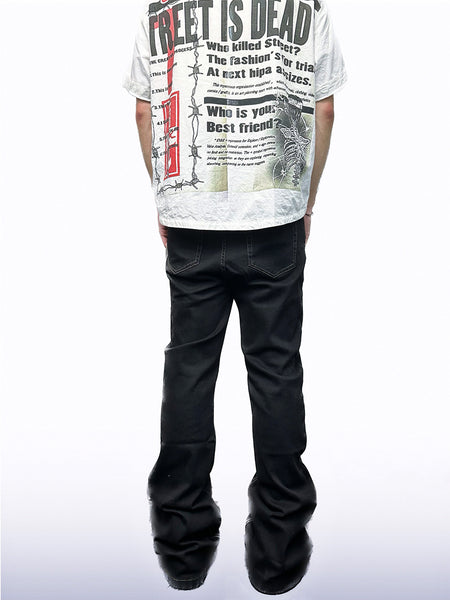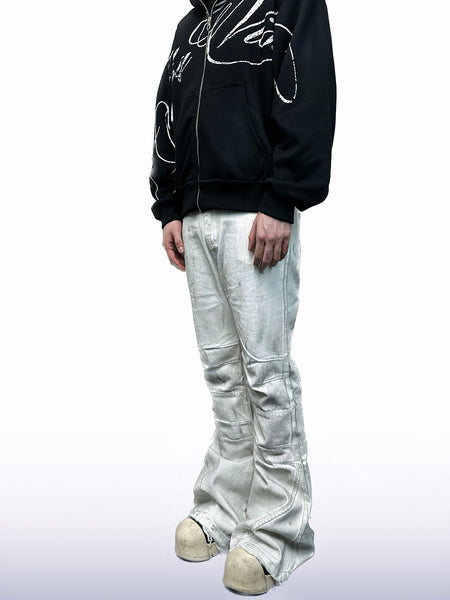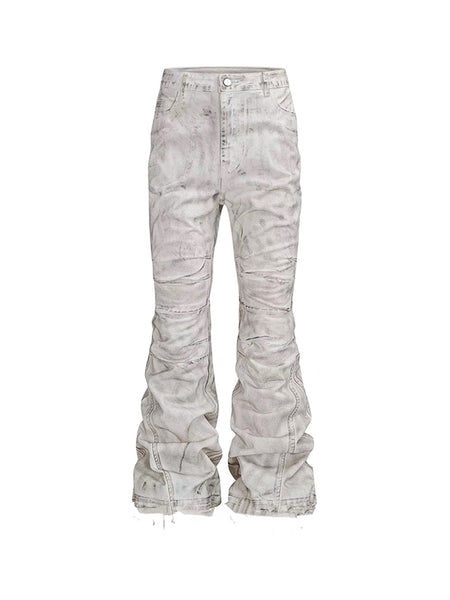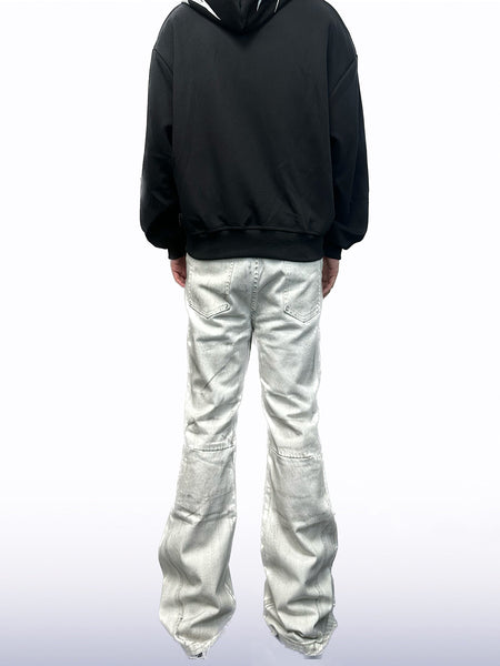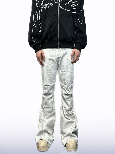 CandyCash | Dirty Coated Pleated Fringe Jeans