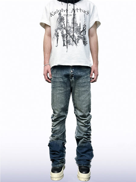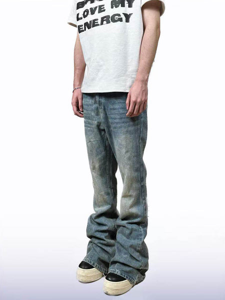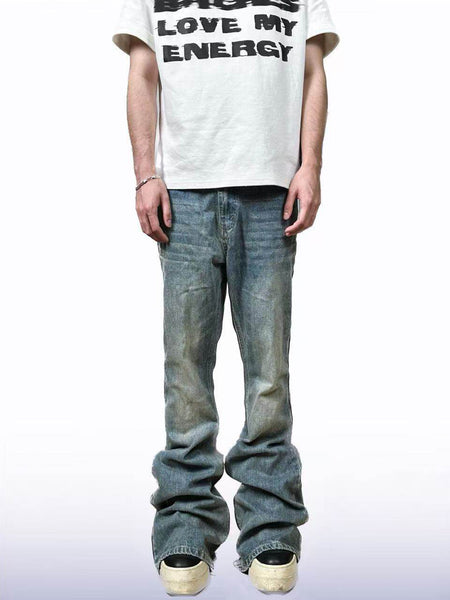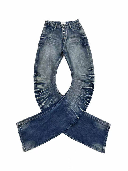 CandyCash | Crackled Washed Whiskered Flared Jeans