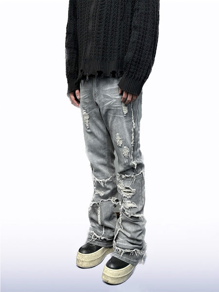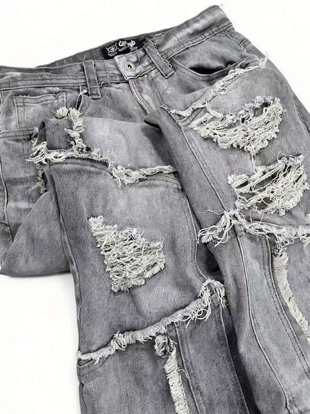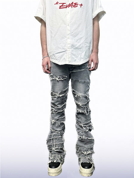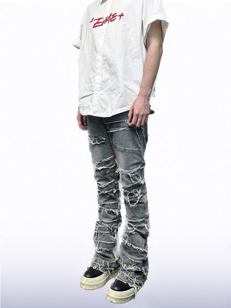 SEE | Faux Two-Piece Patchwork Ripped Jeans