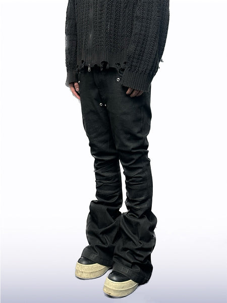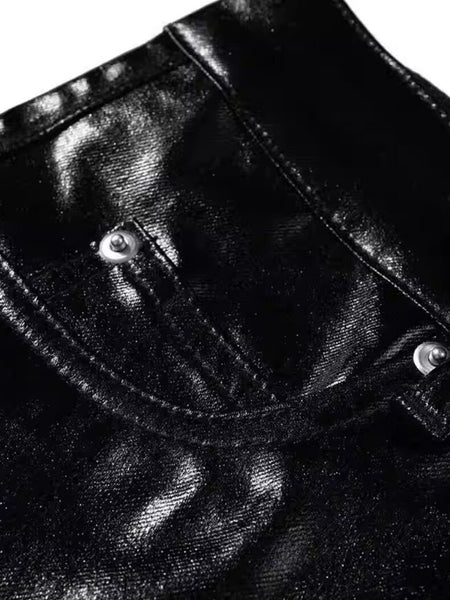 CandyCash | Wax-Coated Wrinkled Studded Jeans