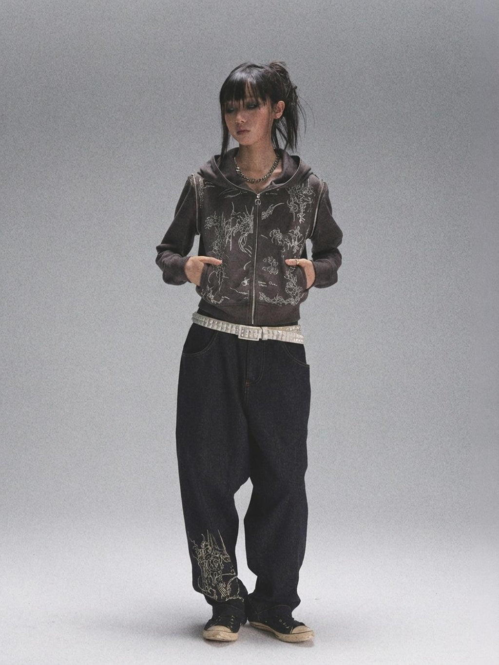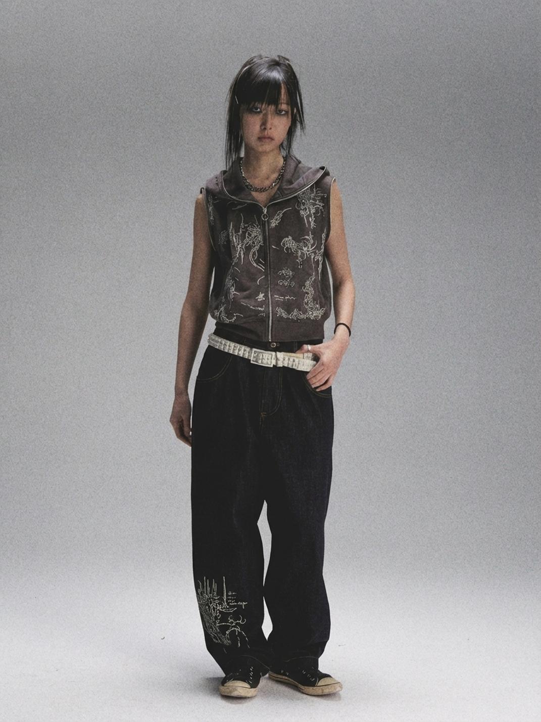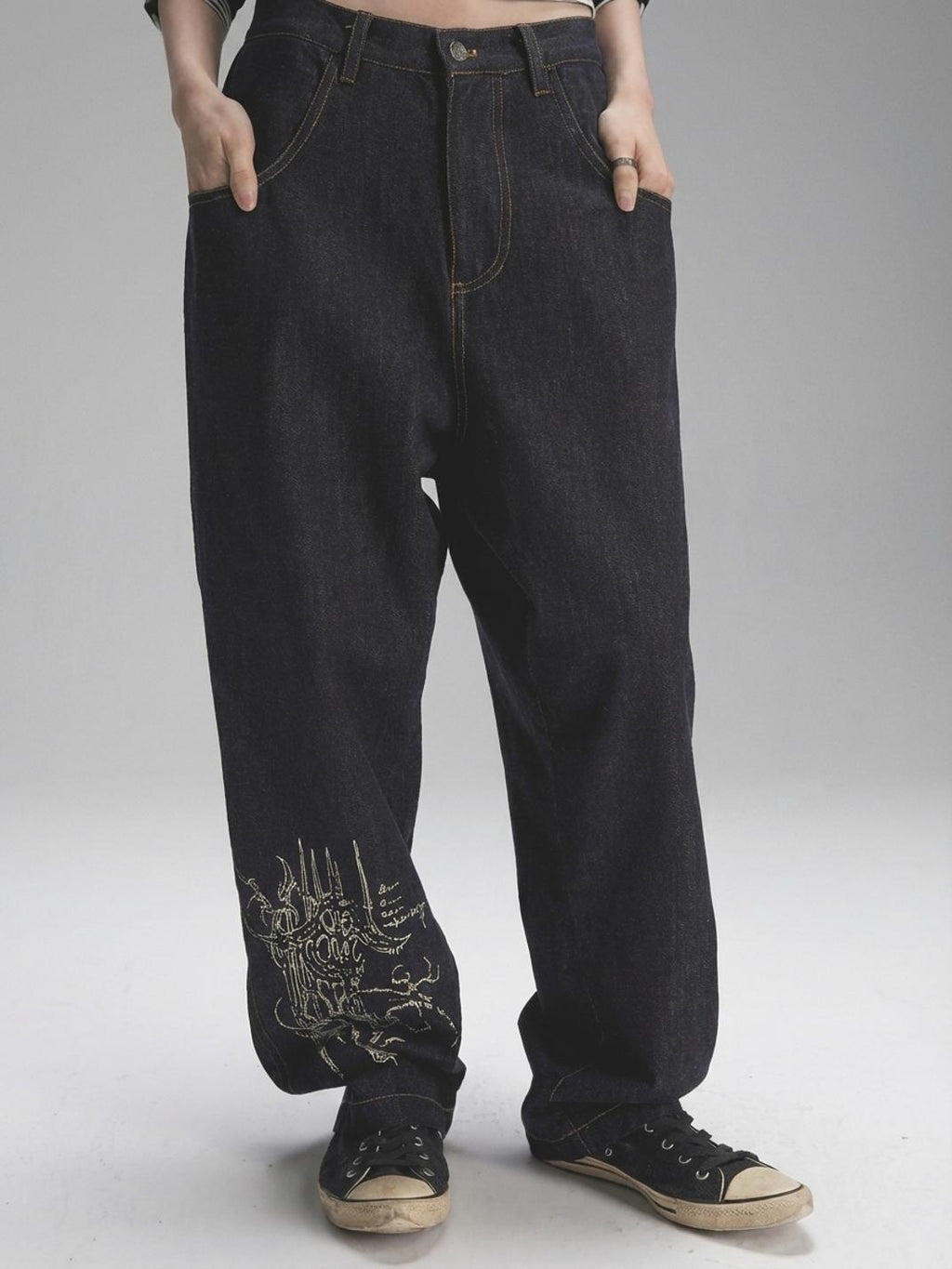 NONAME SPACE | Loose-Fitting Raw Color Printed Denim Pants コンテンツにスキップ