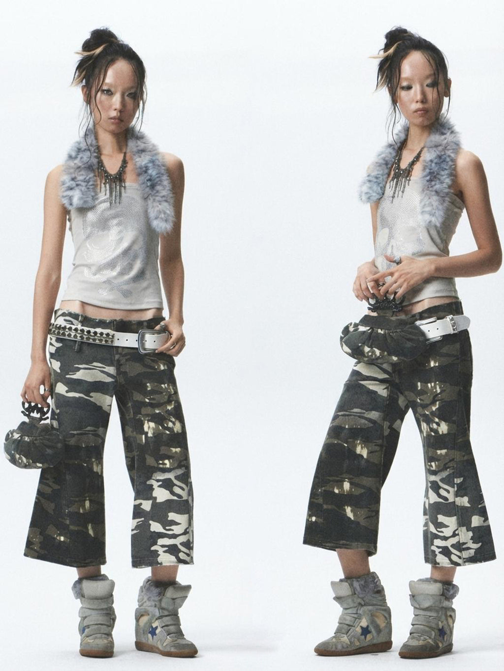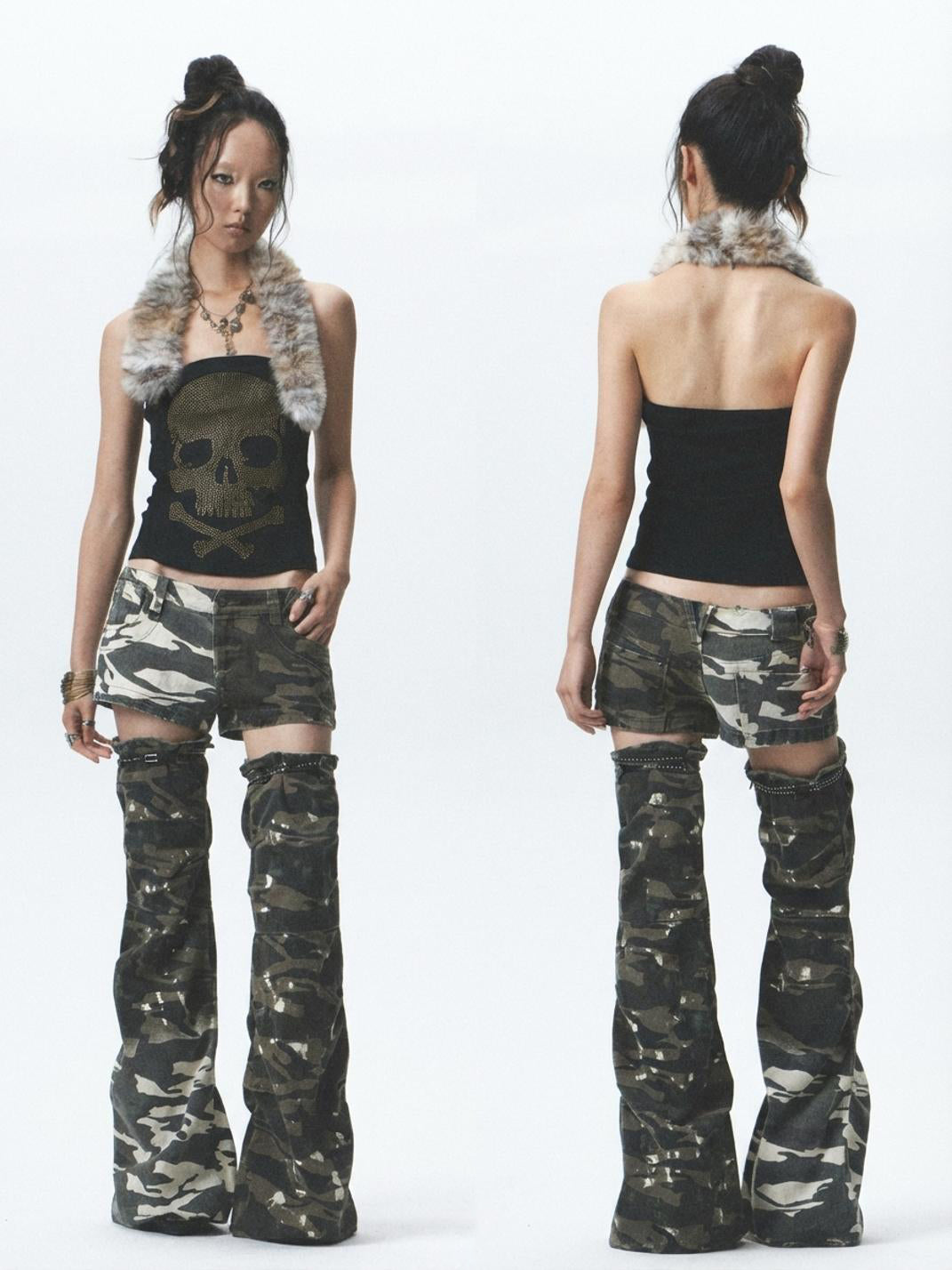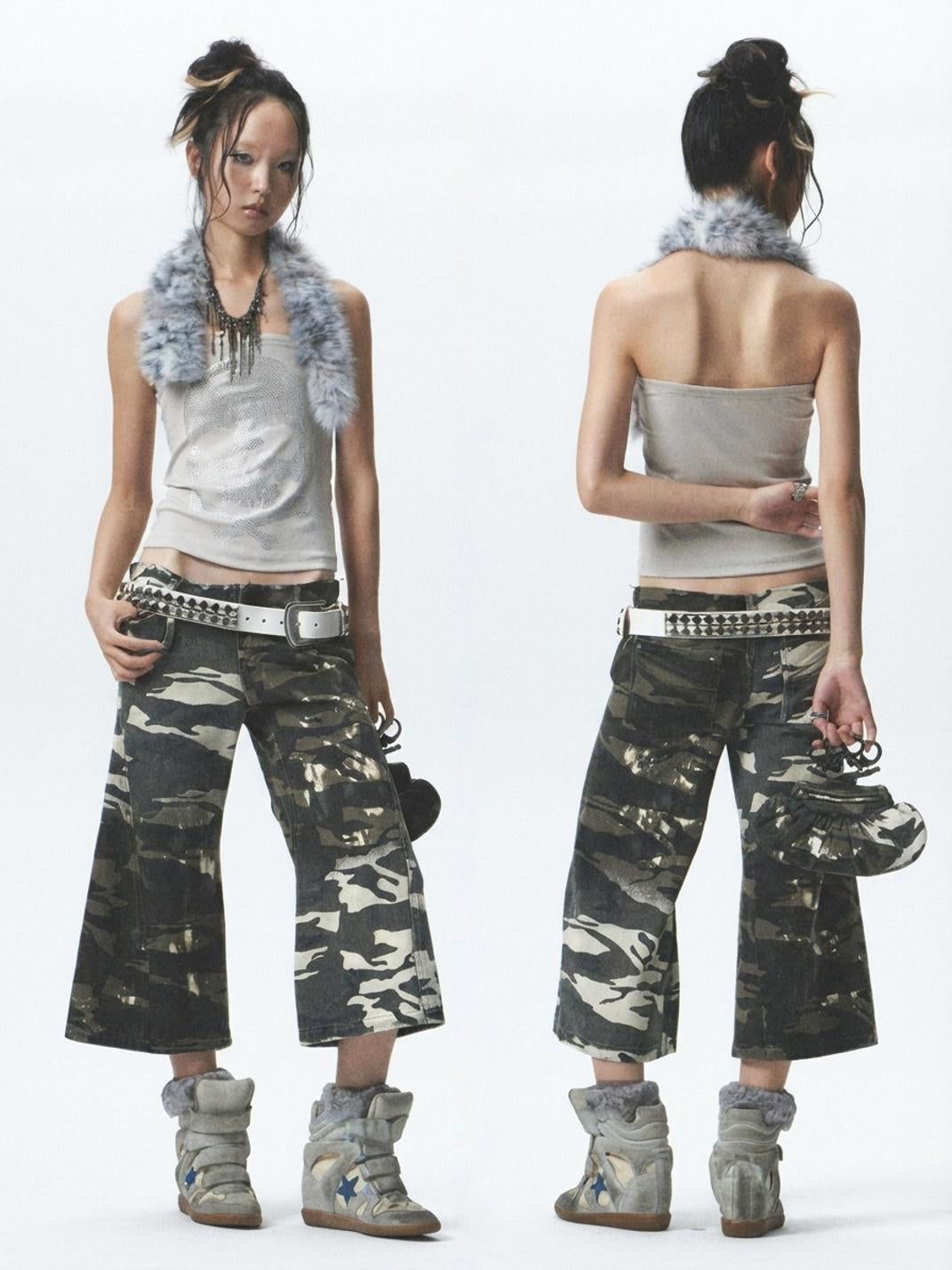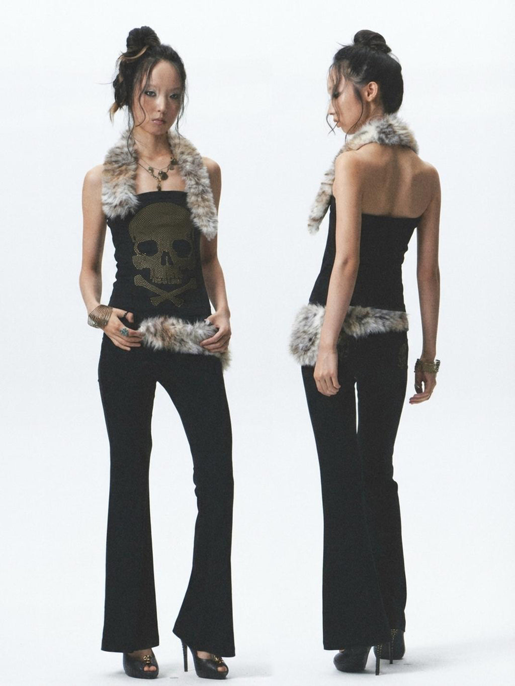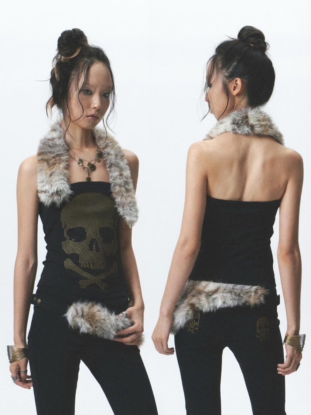 NONAME SPACE | Plush Patchwork Rhinestone Vest/Bandless T-Shirt