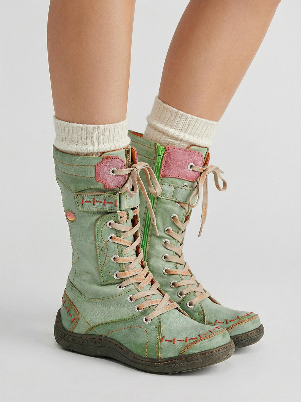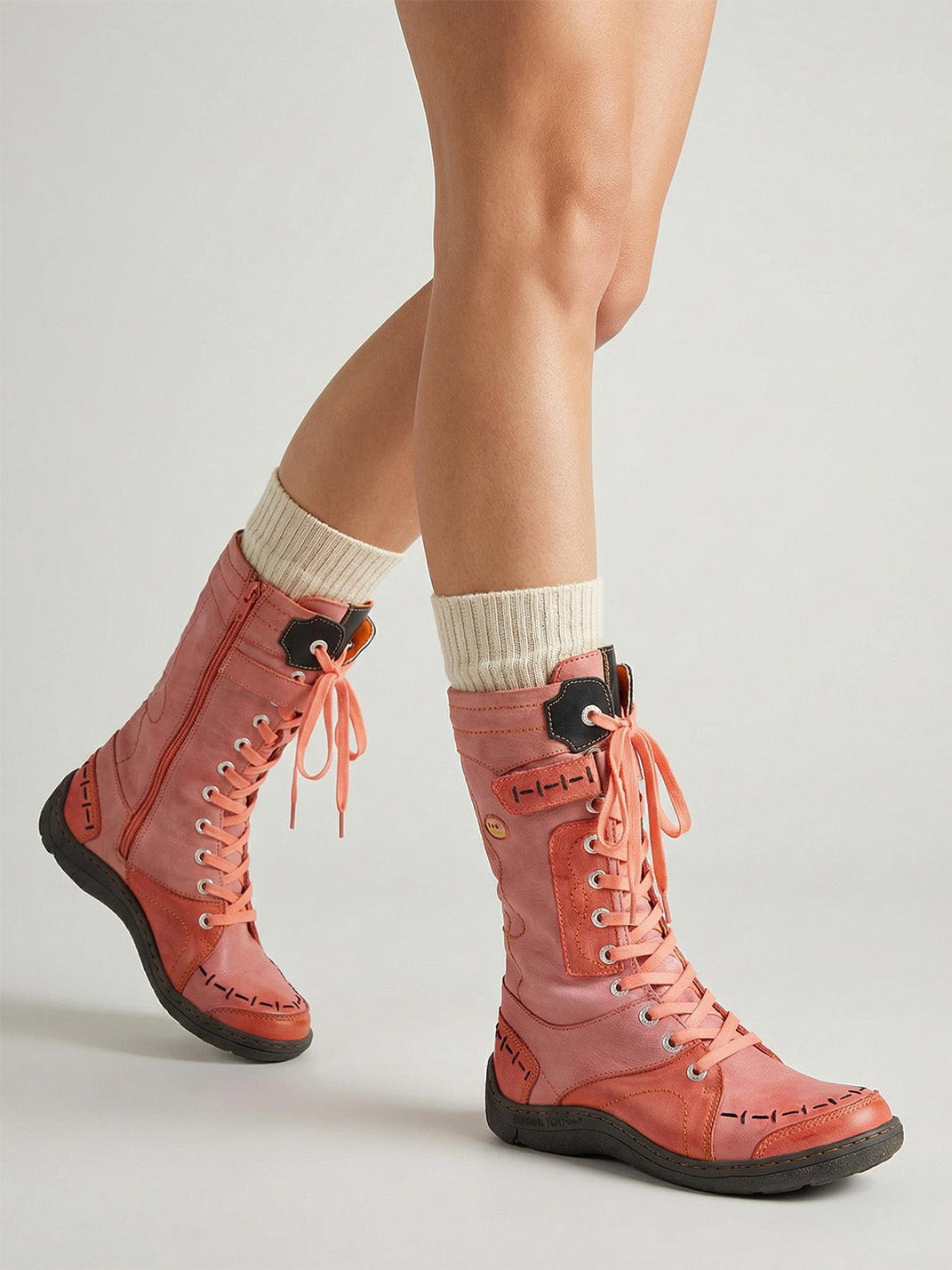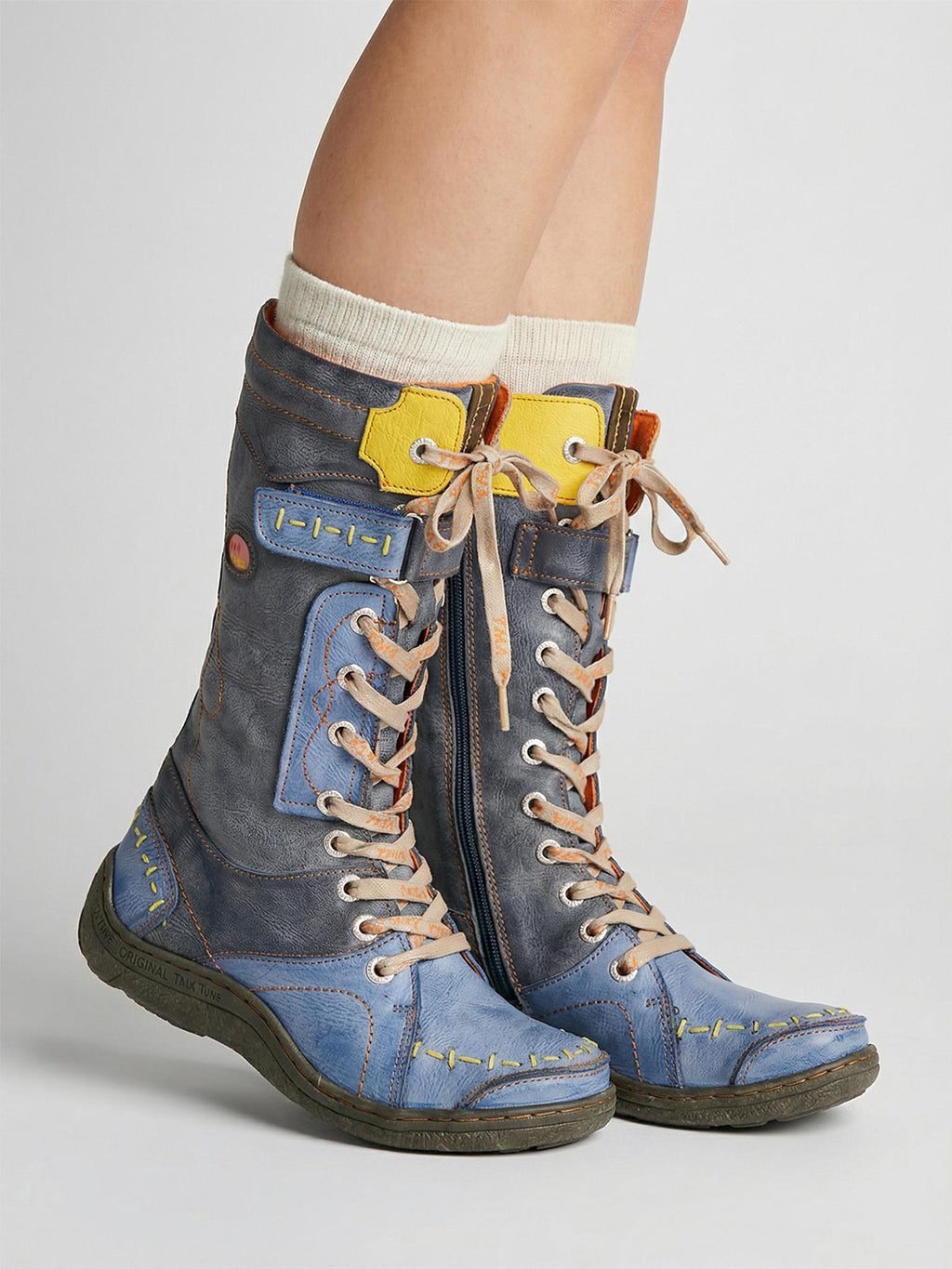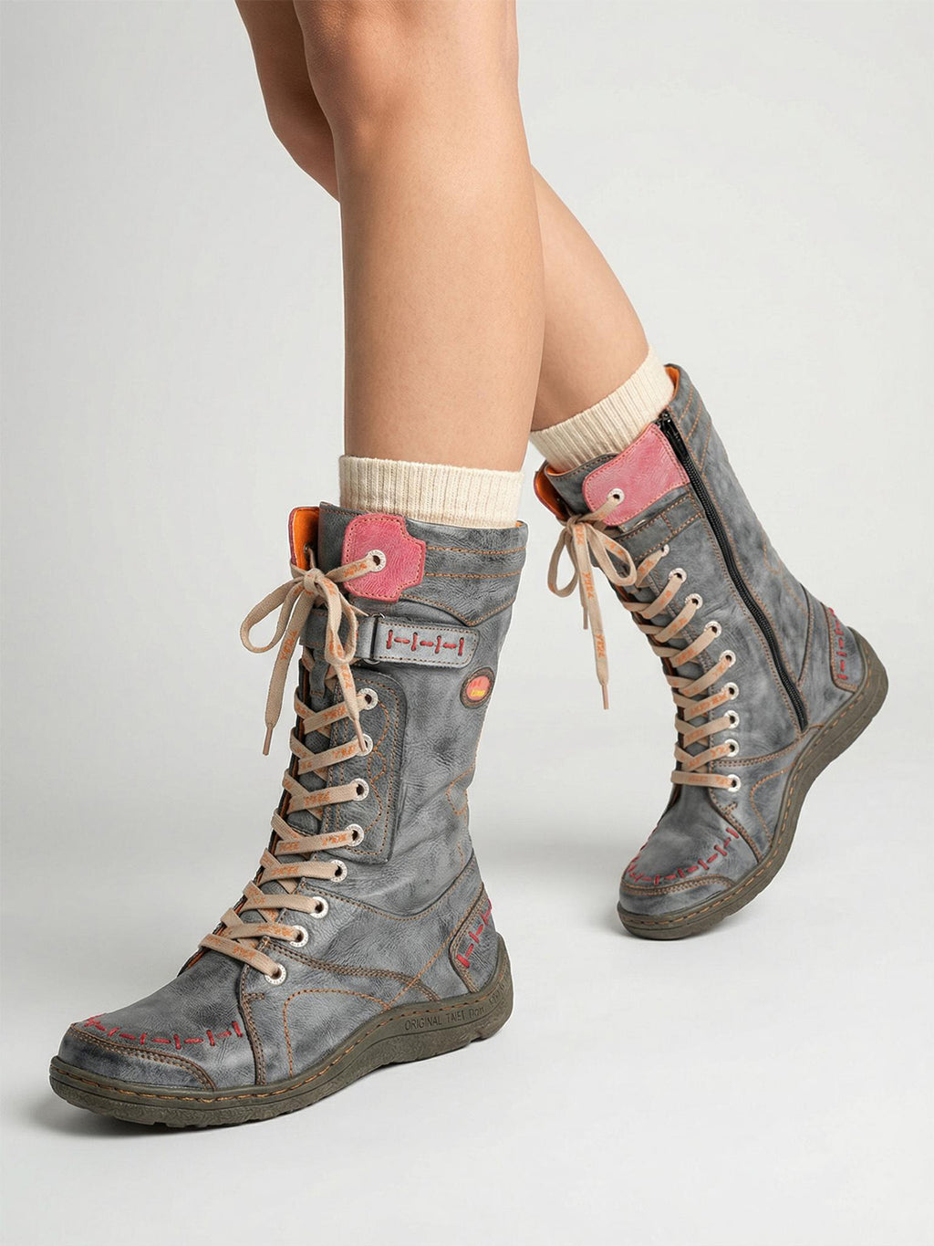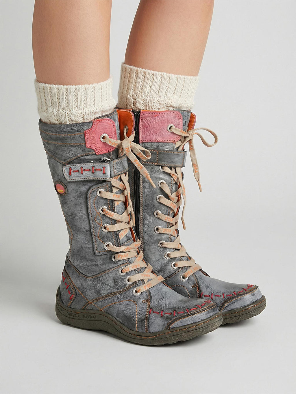 TMA EYES | ウォッシュ加工PU Y2Kスタイル スノーブーツ - フリース裏地