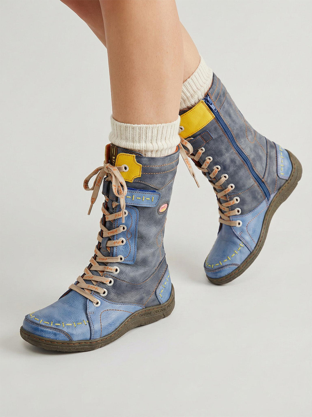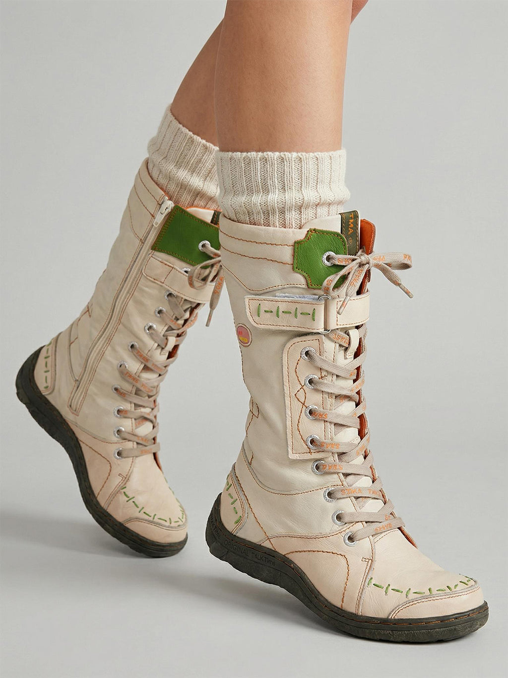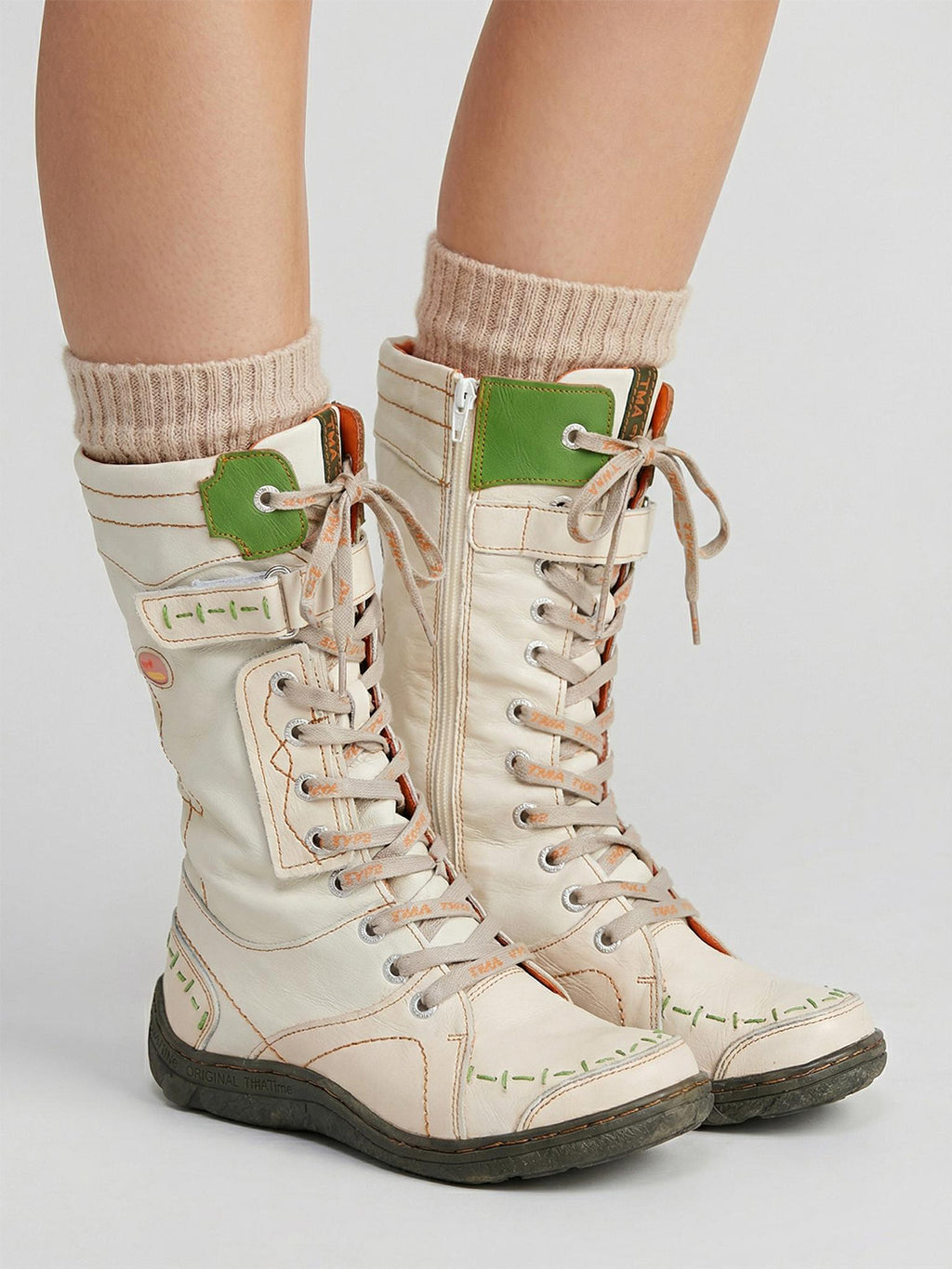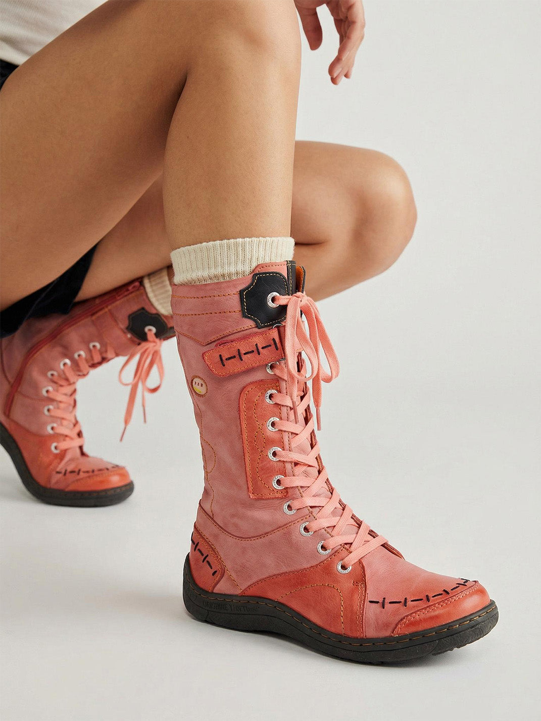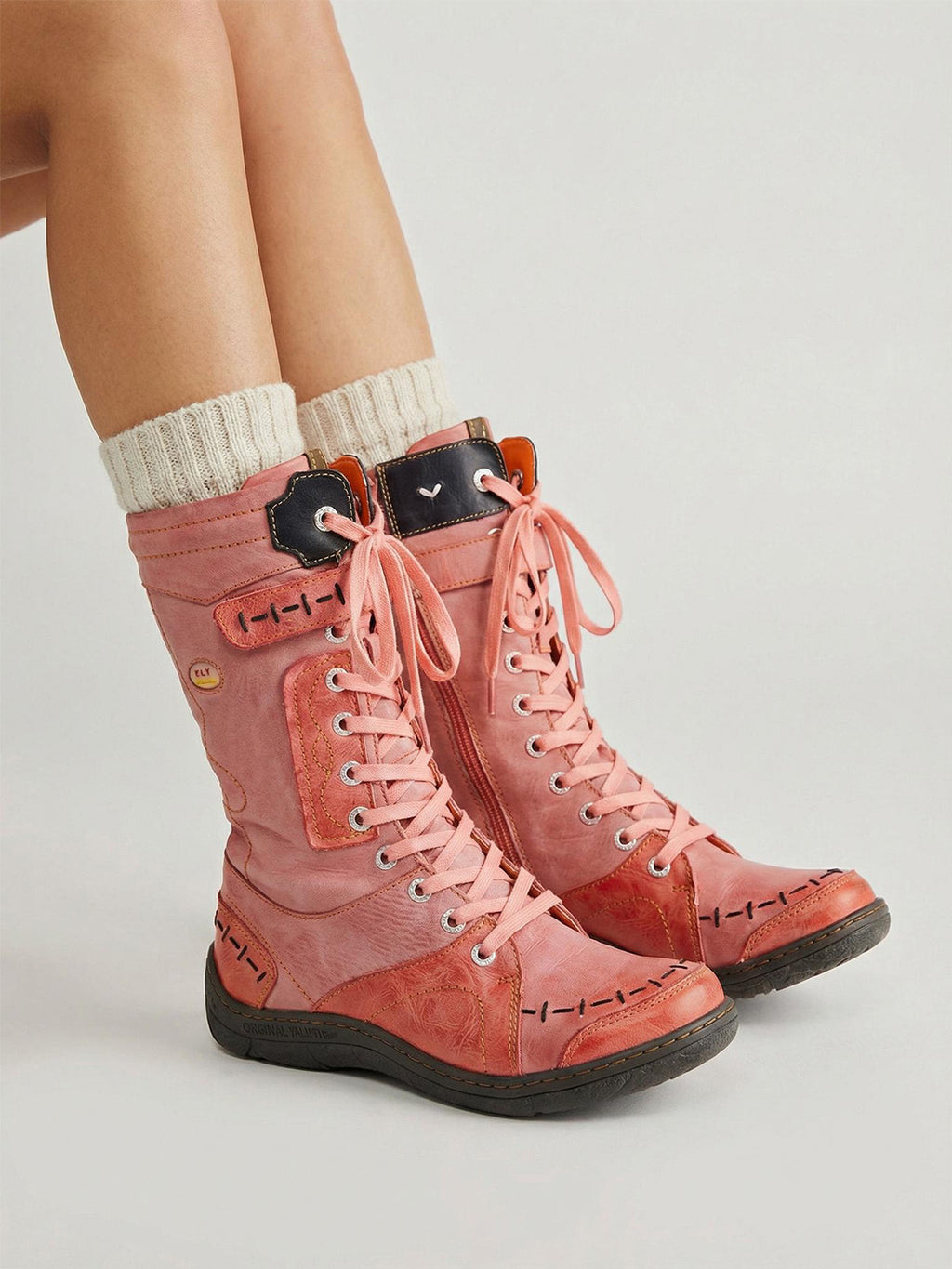 TMA EYES | ウォッシュ加工PU Y2Kスタイル スノーブーツ - フリース裏地