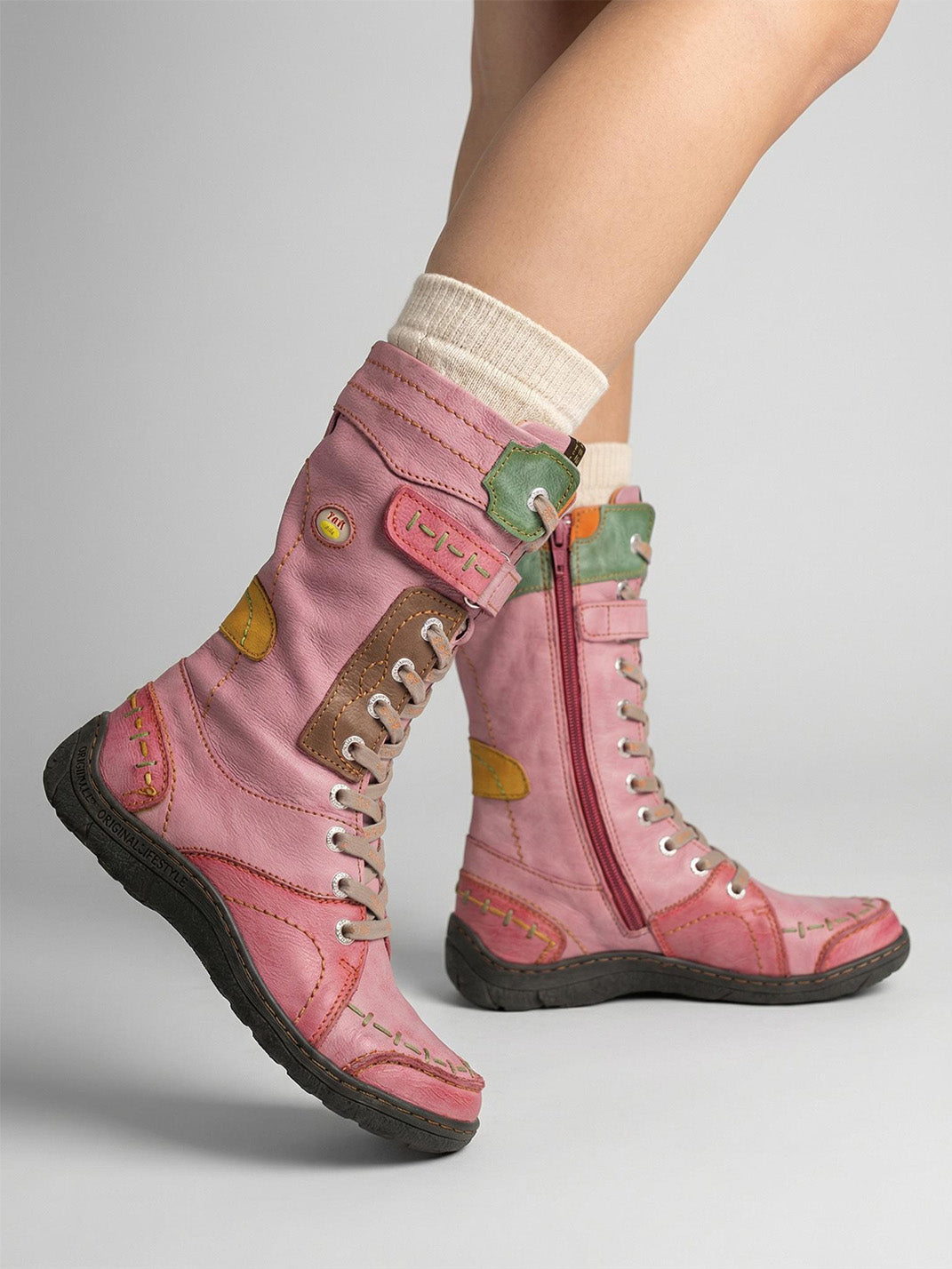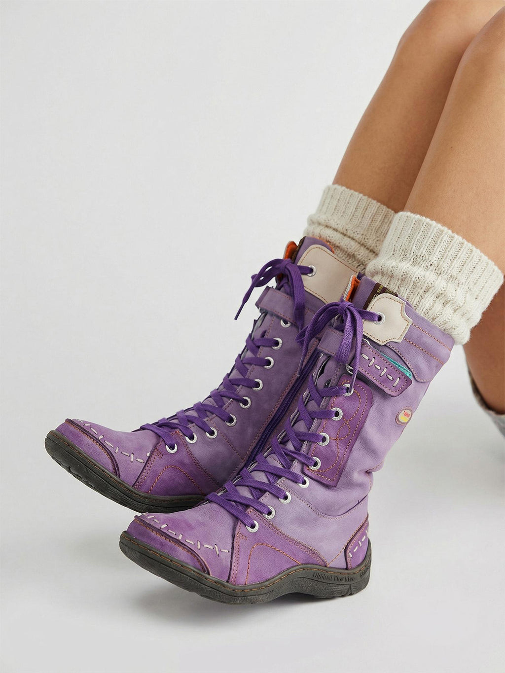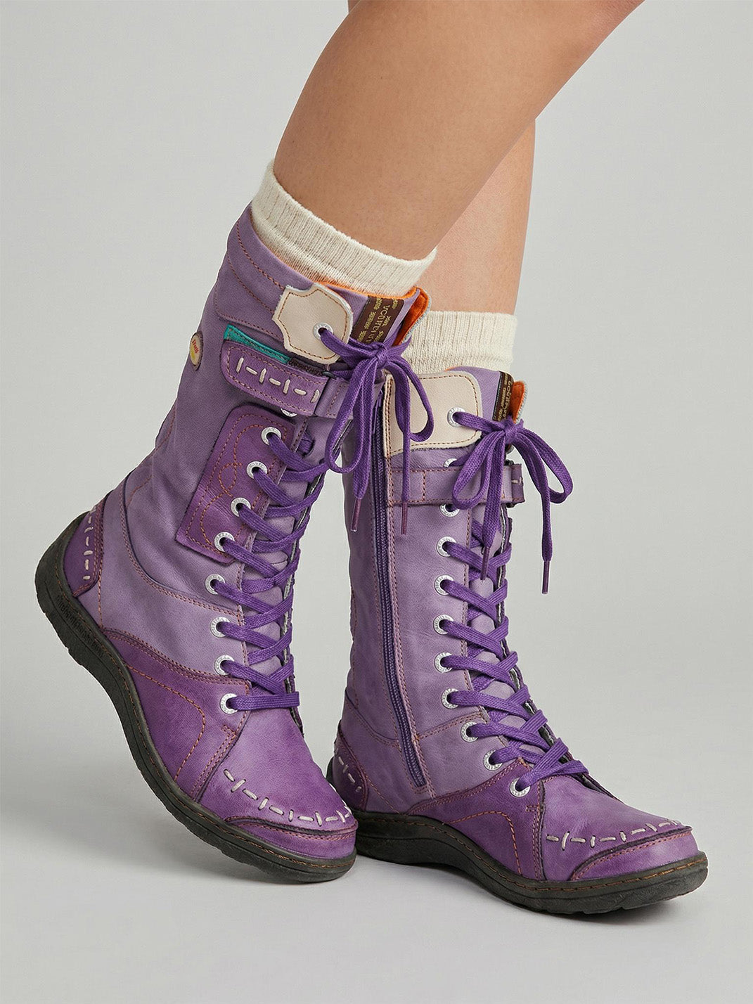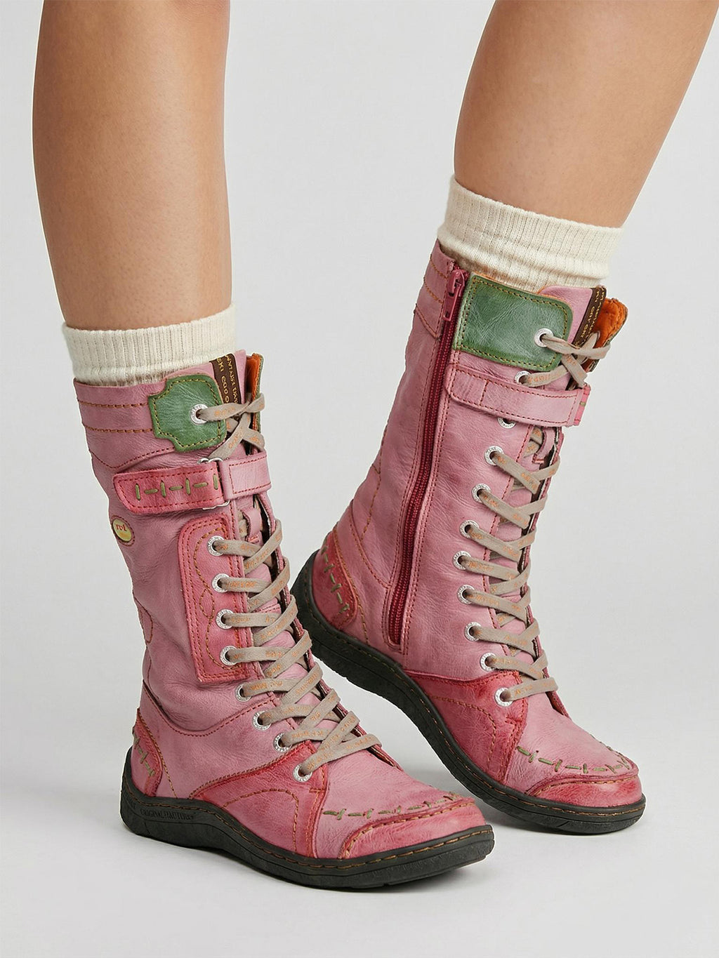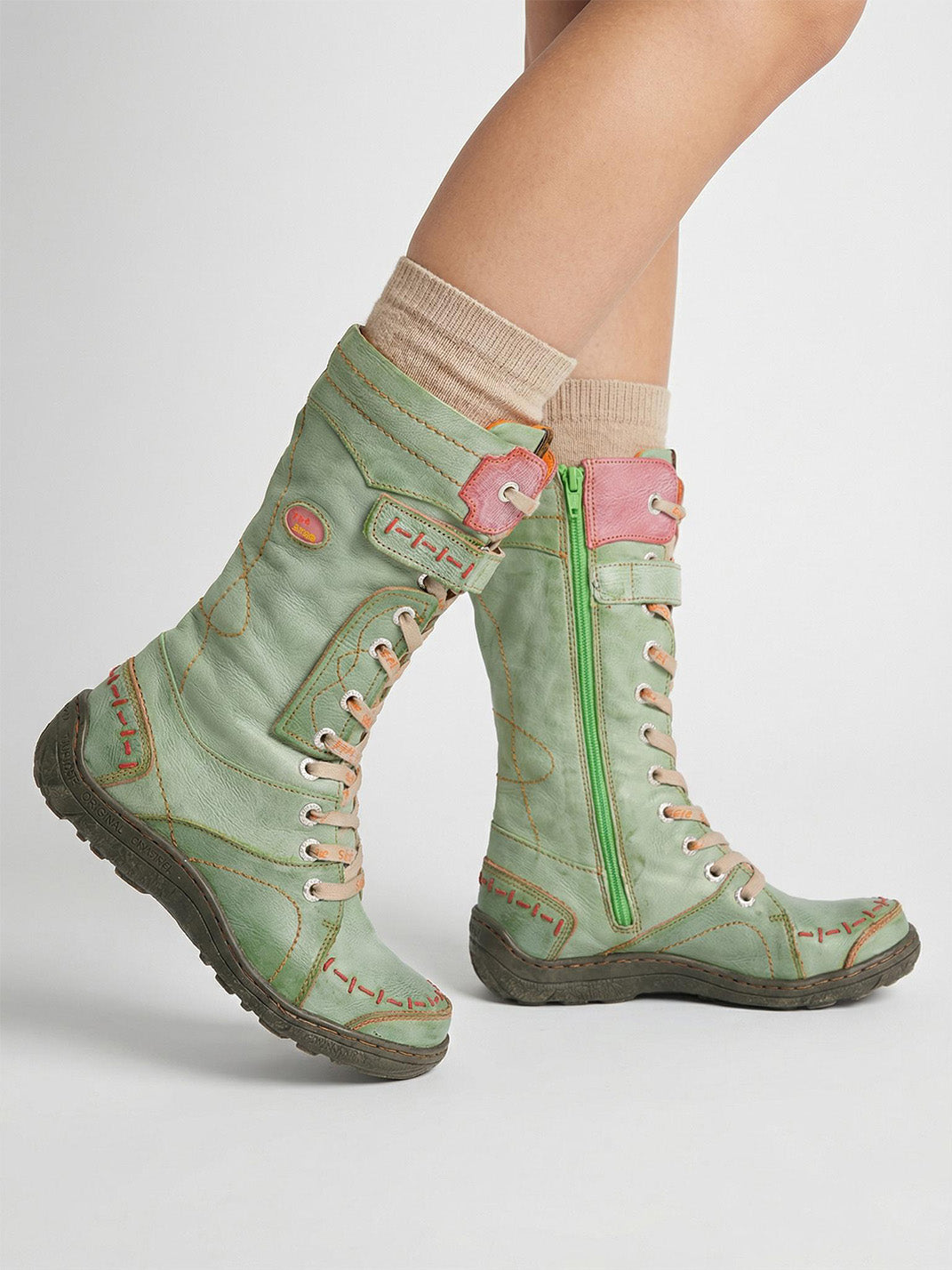 TMA EYES | ウォッシュ加工PU Y2Kスタイル スノーブーツ - フリース裏地