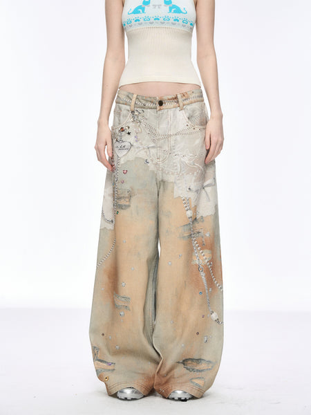 GURBAKS | Studded Denim Streetwear Loose Fit Jeans