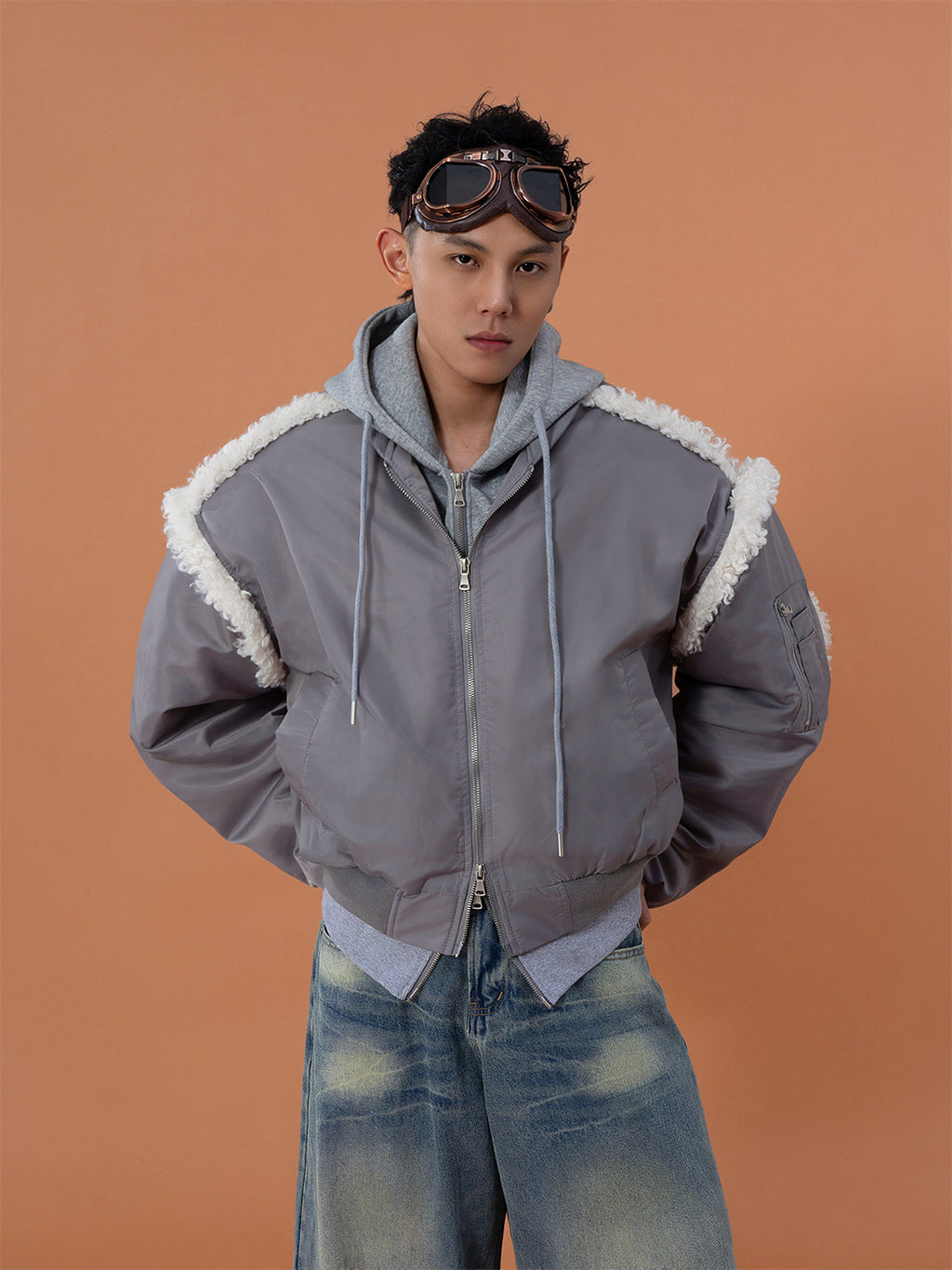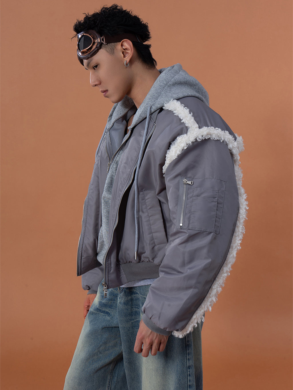 CLP | Faux Shearling Fake Two-Piece Hooded Cotton Coat