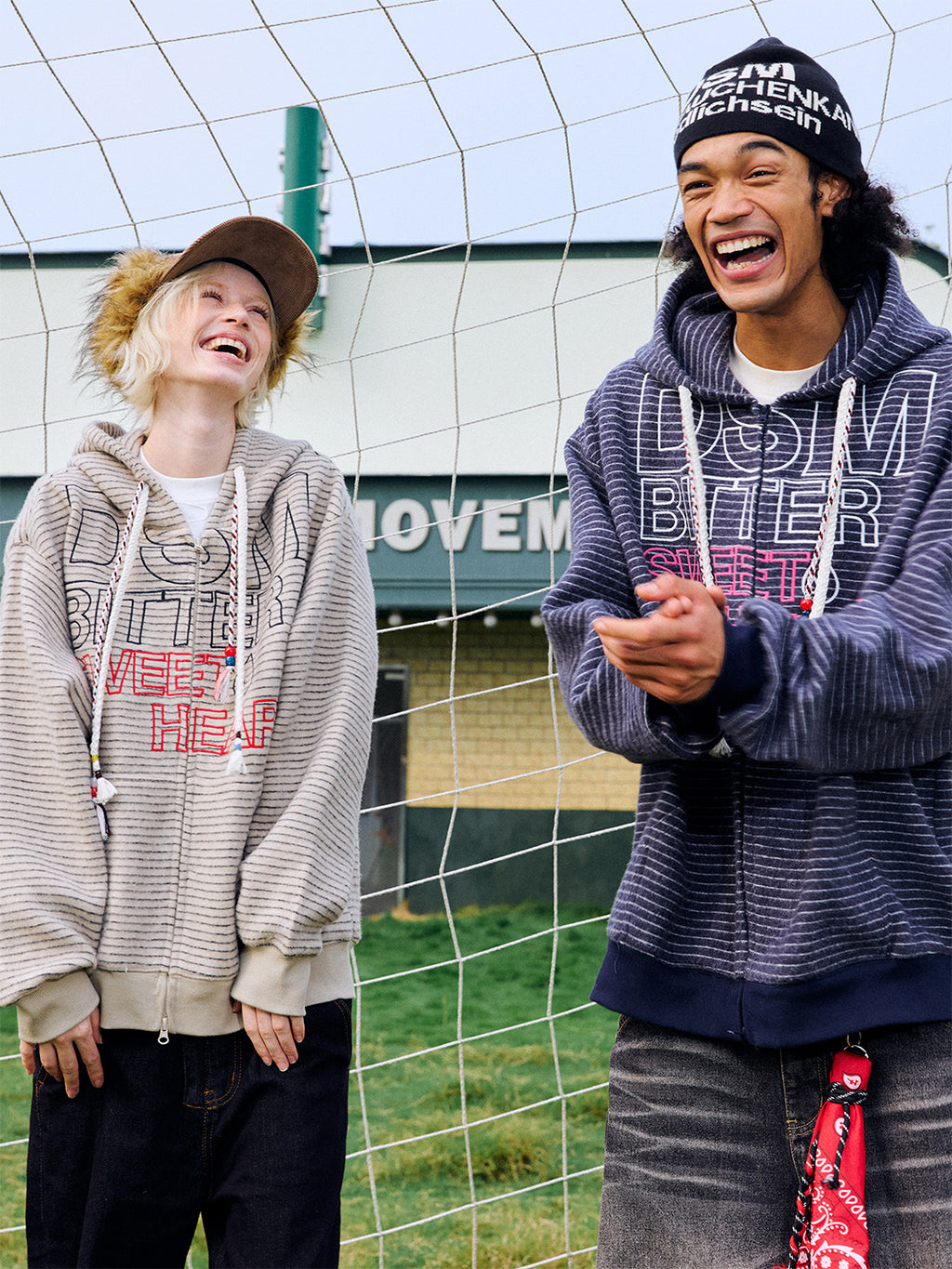 DONSMOKE | Composite Striped Rabbit Fur Knit Sweatshirt コンテンツにスキップ