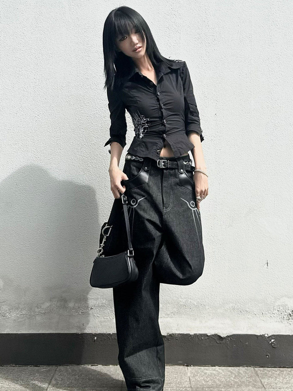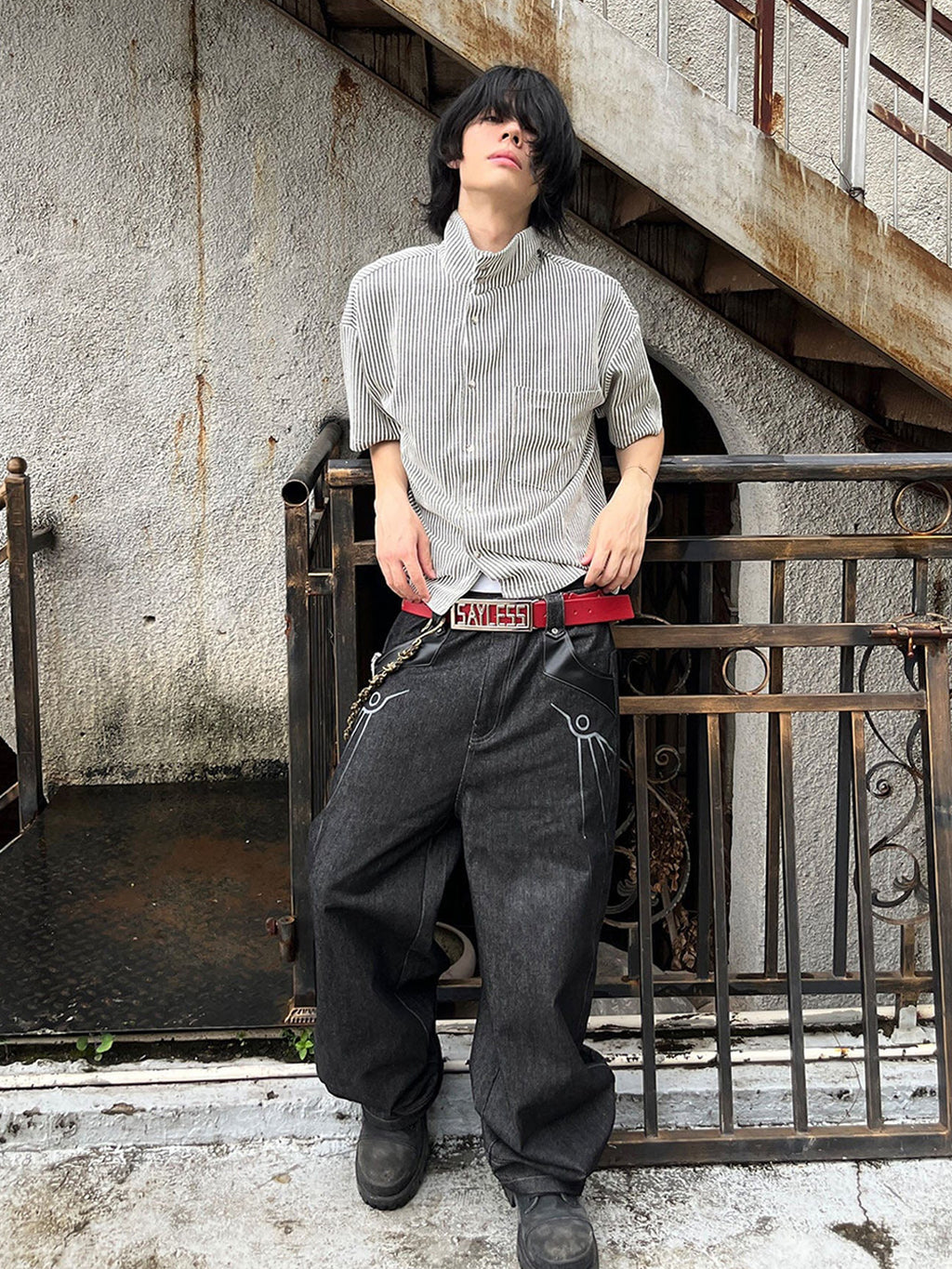 Esaias | Phoenix Graphic Wide-Leg Raw Jeans コンテンツにスキップ