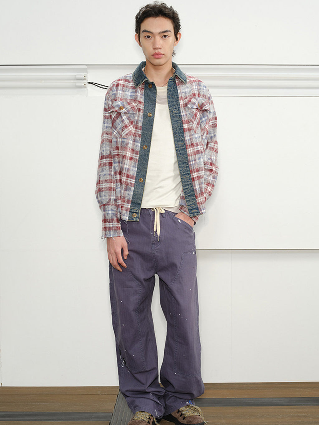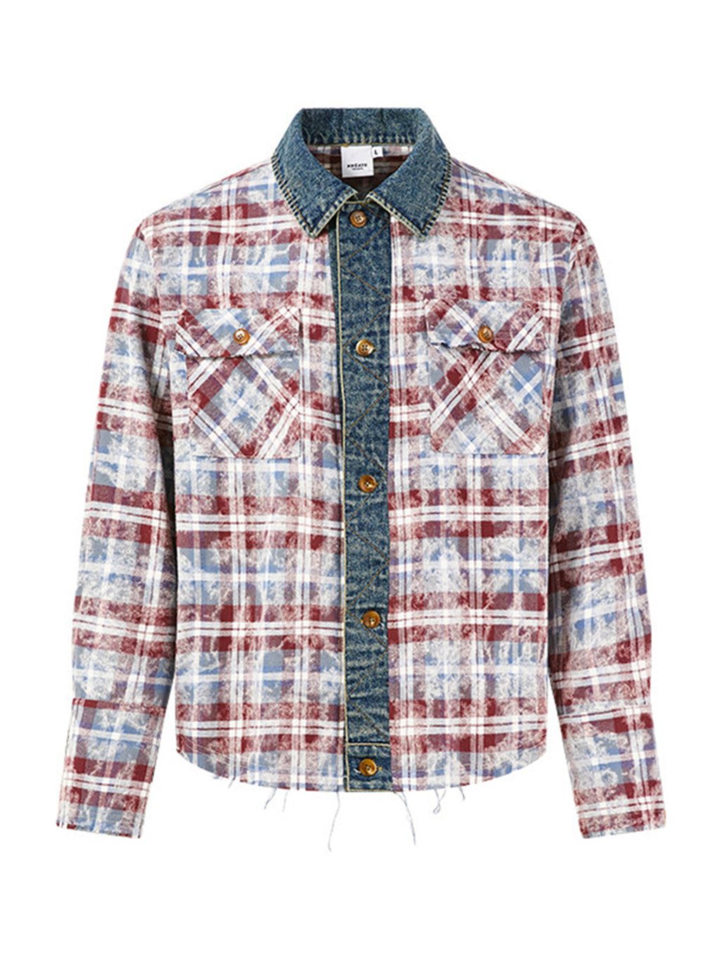 KREATE | Plaid Patchwork Denim Shirt コンテンツにスキップ