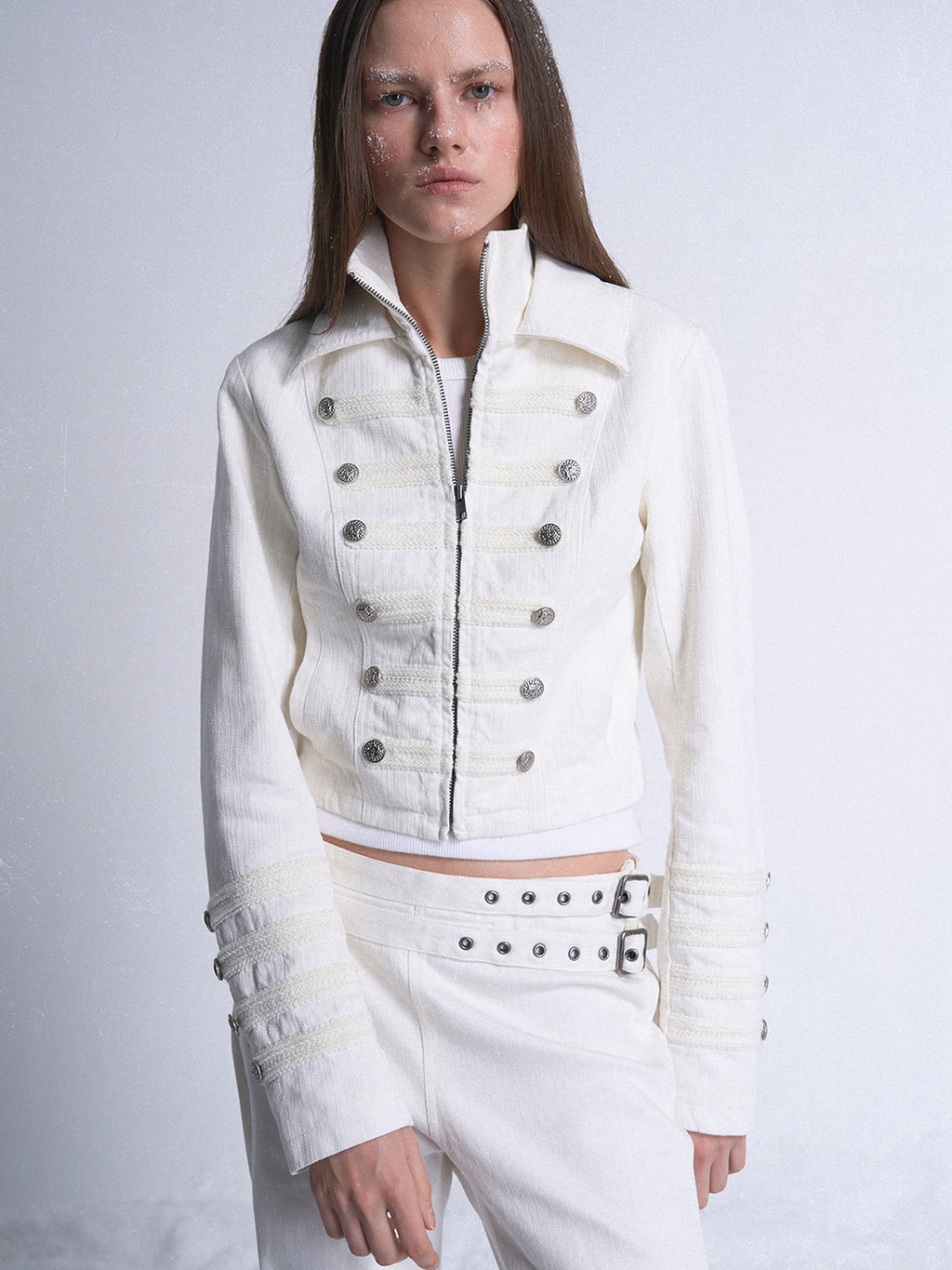 noEmosen | Bamboo-Patterned Studded Denim Jacket コンテンツにスキップ