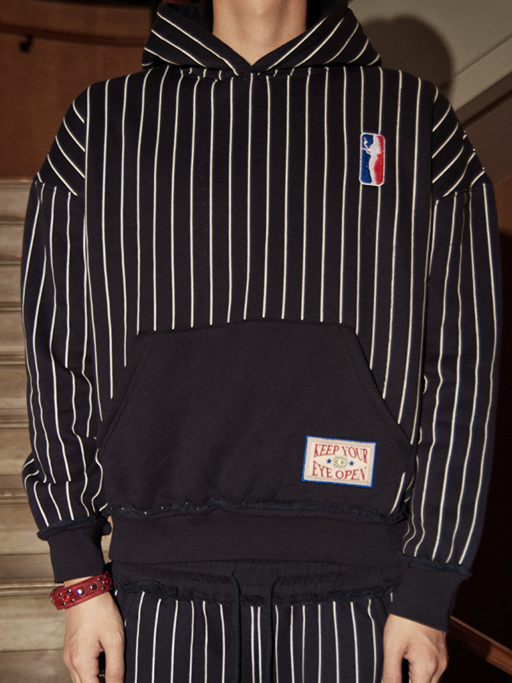 PHANTOMHUNTER | Stripe Embroidered Studded Hoodie コンテンツにスキップ