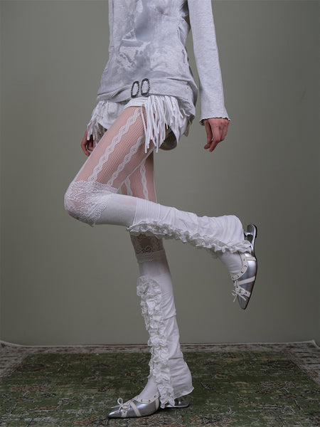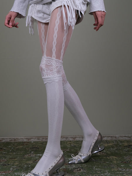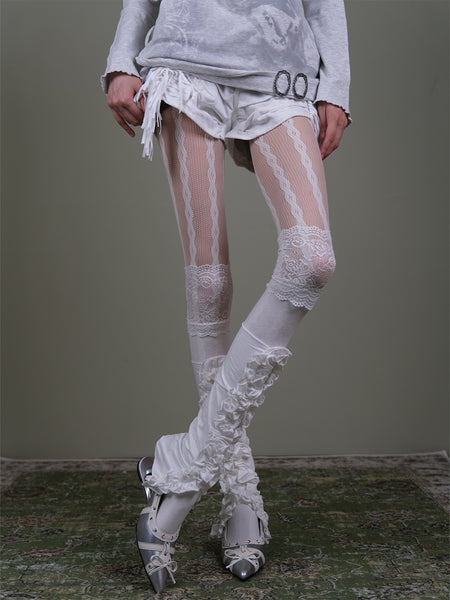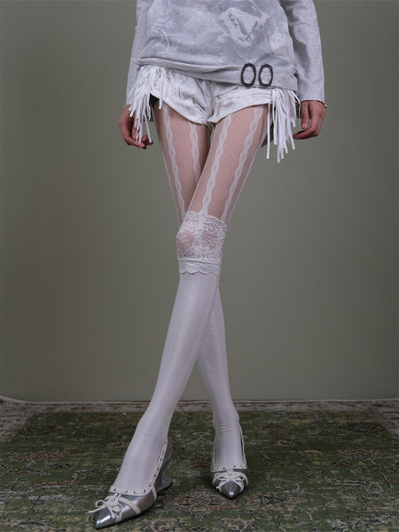 XILING | Fishnet Stockings + Lace-Trimmed Over-...