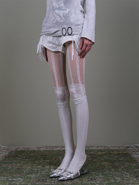 Bokior | Lace-Trimmed Suspender Bow-Tied Stockings