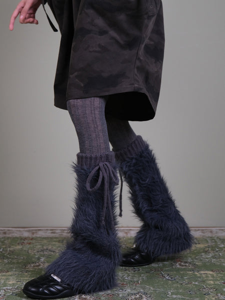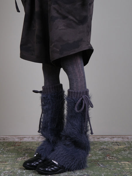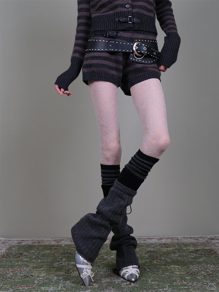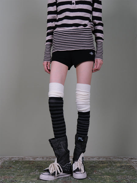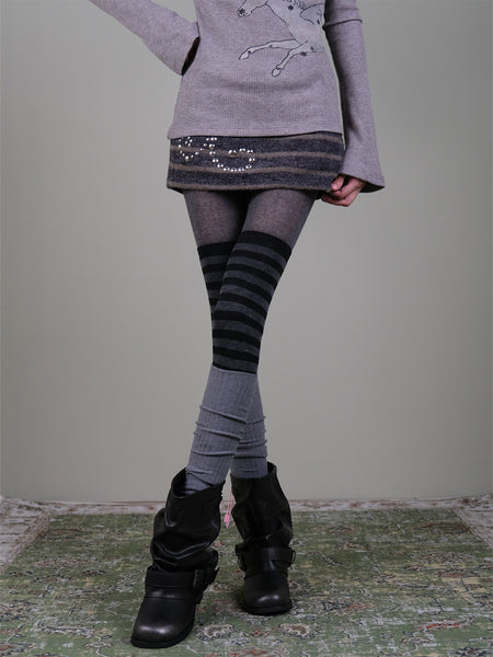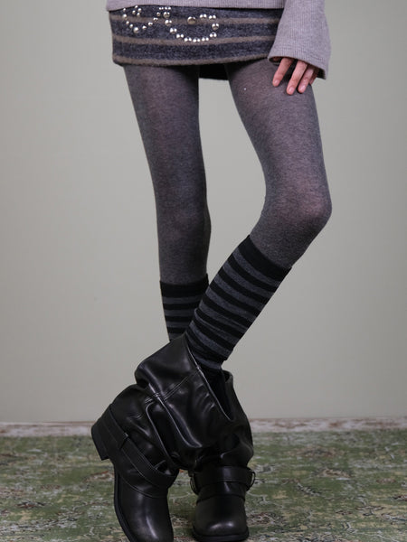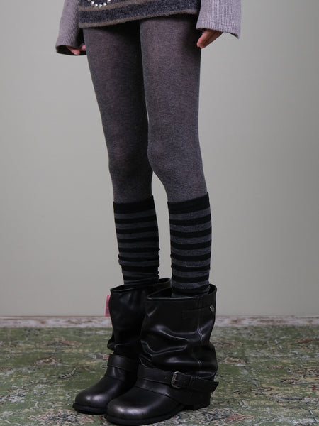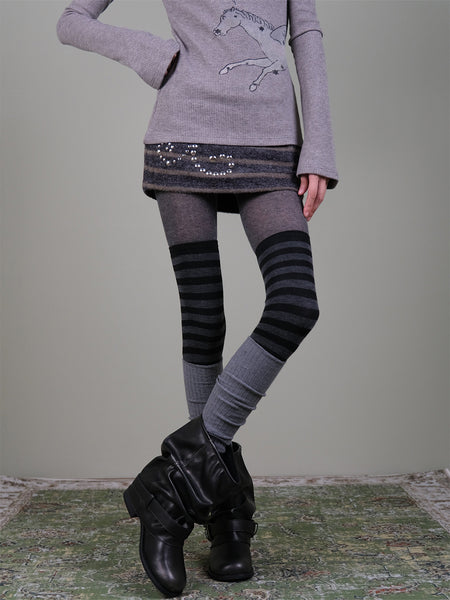 XILING | Dark Gray Tights + Striped Over-the-Kn...
