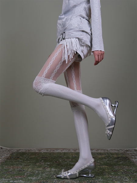 Bokior | Lace Trim Over-the-Knee Sheer Stockings