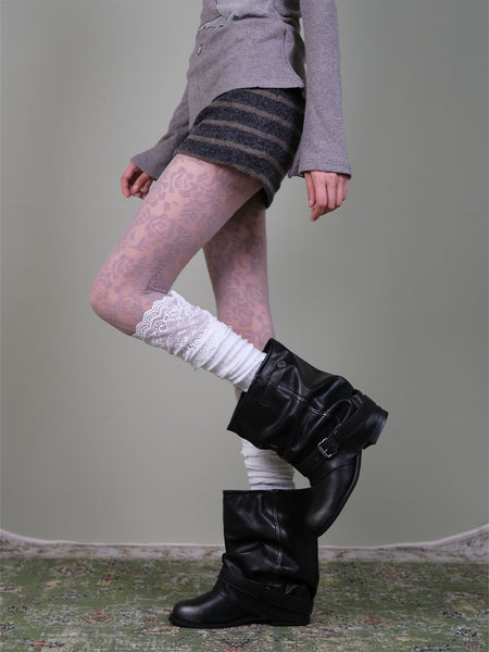 Bokior | Asymmetric Retro Jacquard Sheer Tights