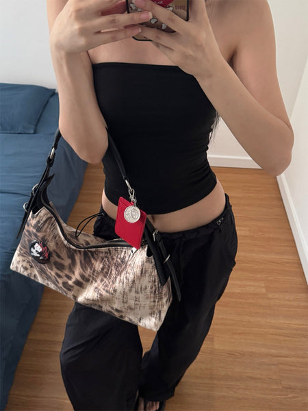 CIRCLECUSTOM丨 Retro Leopard Print Denim Tote Bag