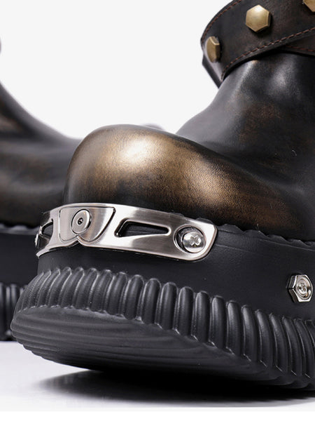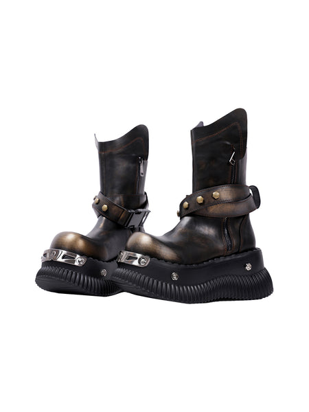 MULE DONKEY | Velcro Strap Chunky Motorcycle Boots