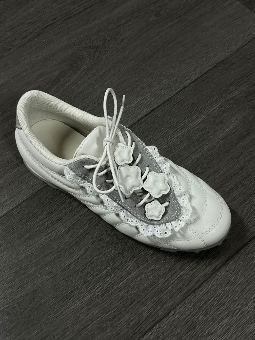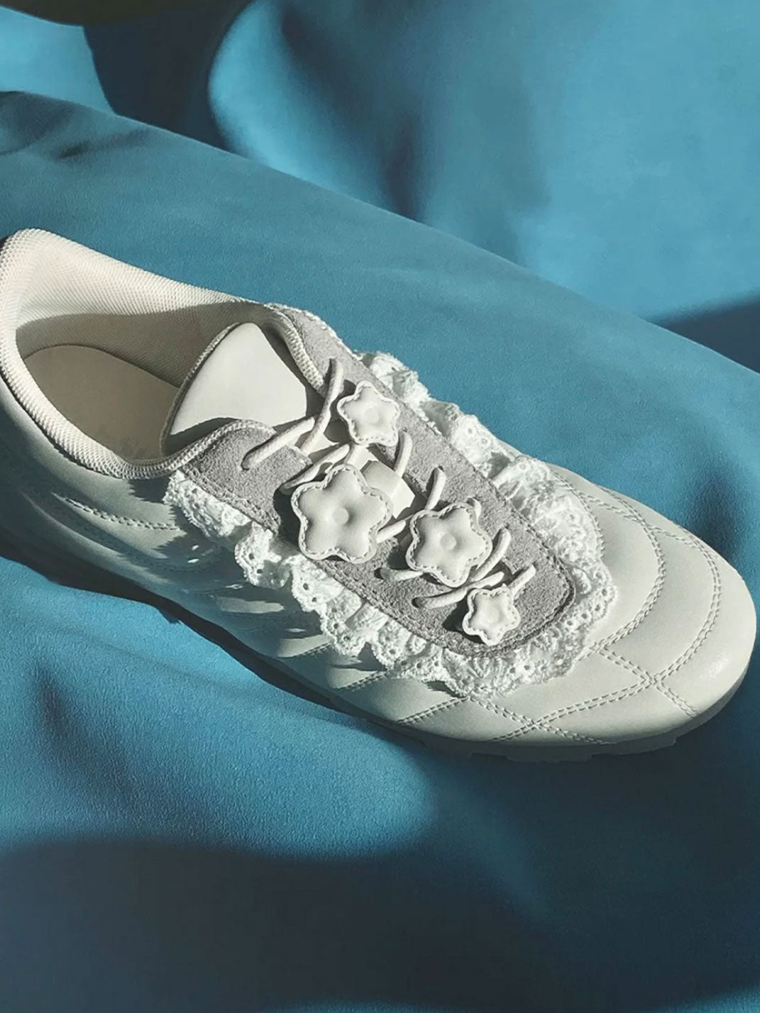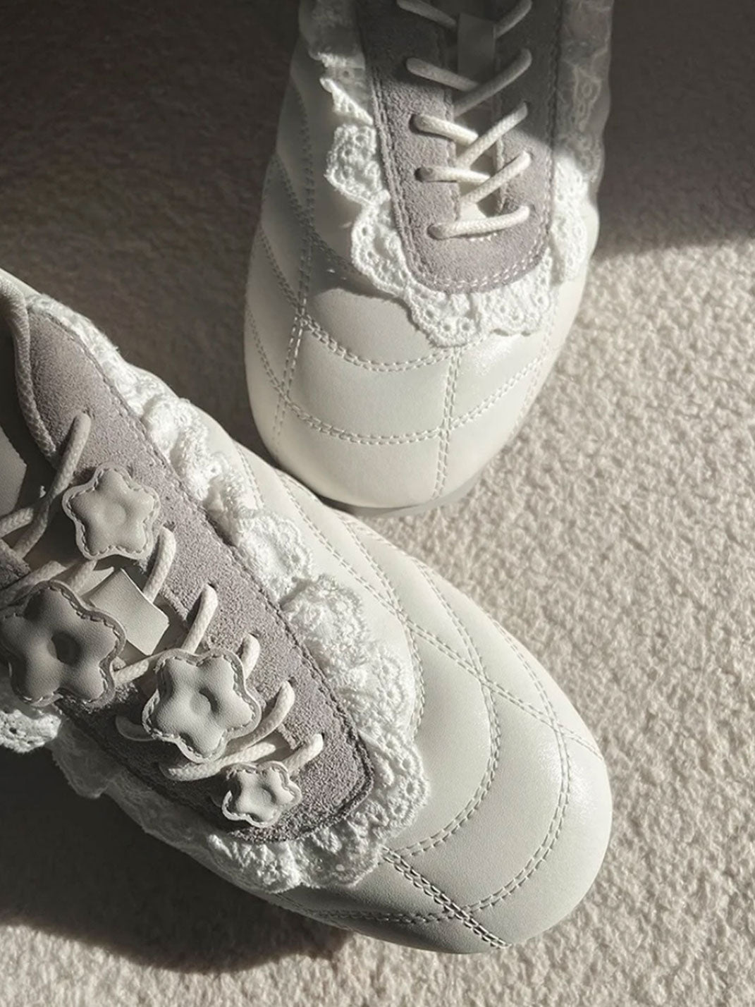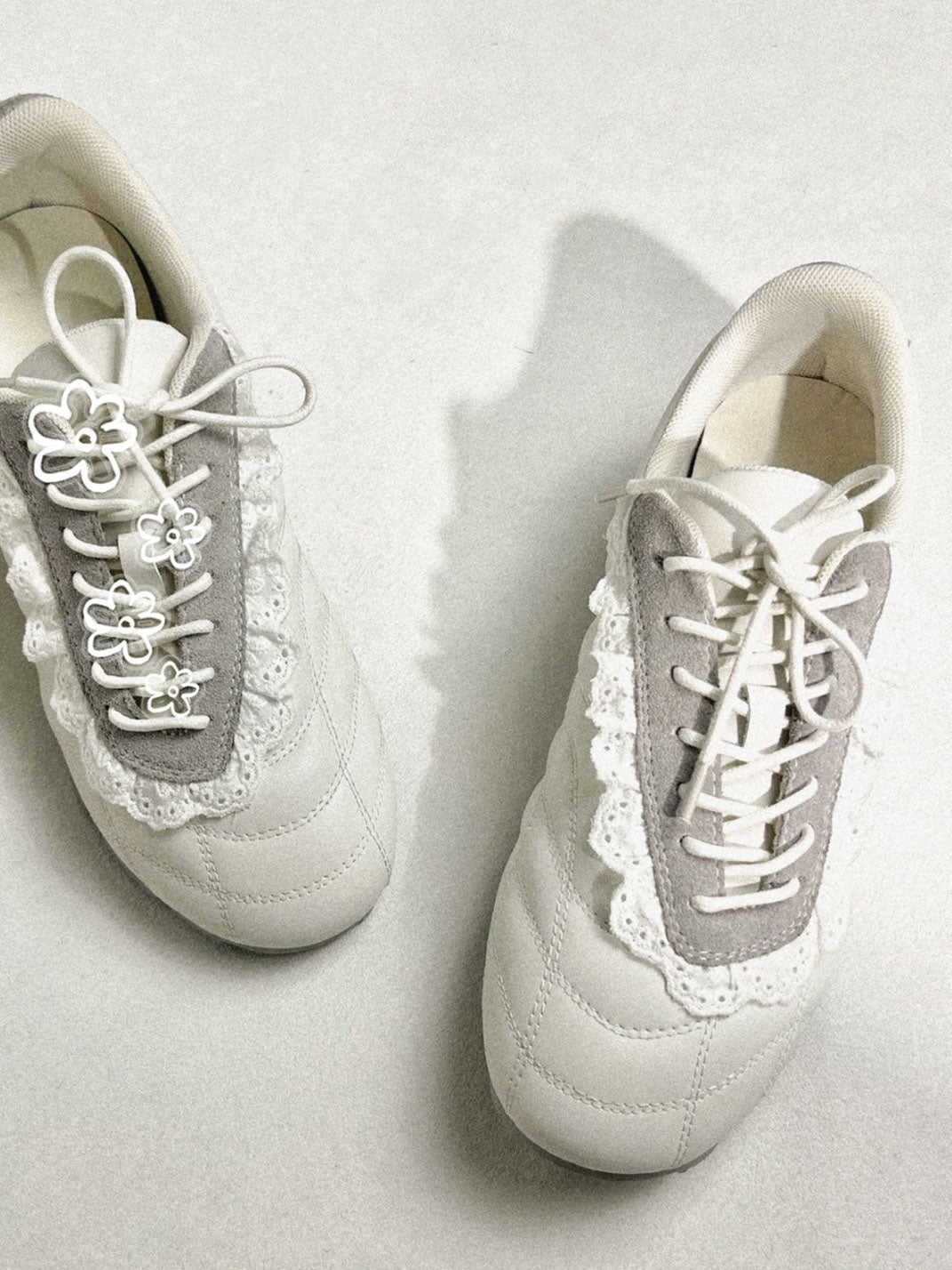 GIRLSHOME丨Lace-Trimmed Flower Detail Leather Sneakers コンテンツにスキップ