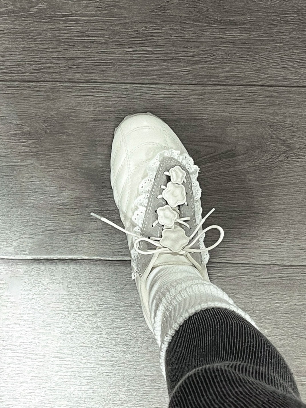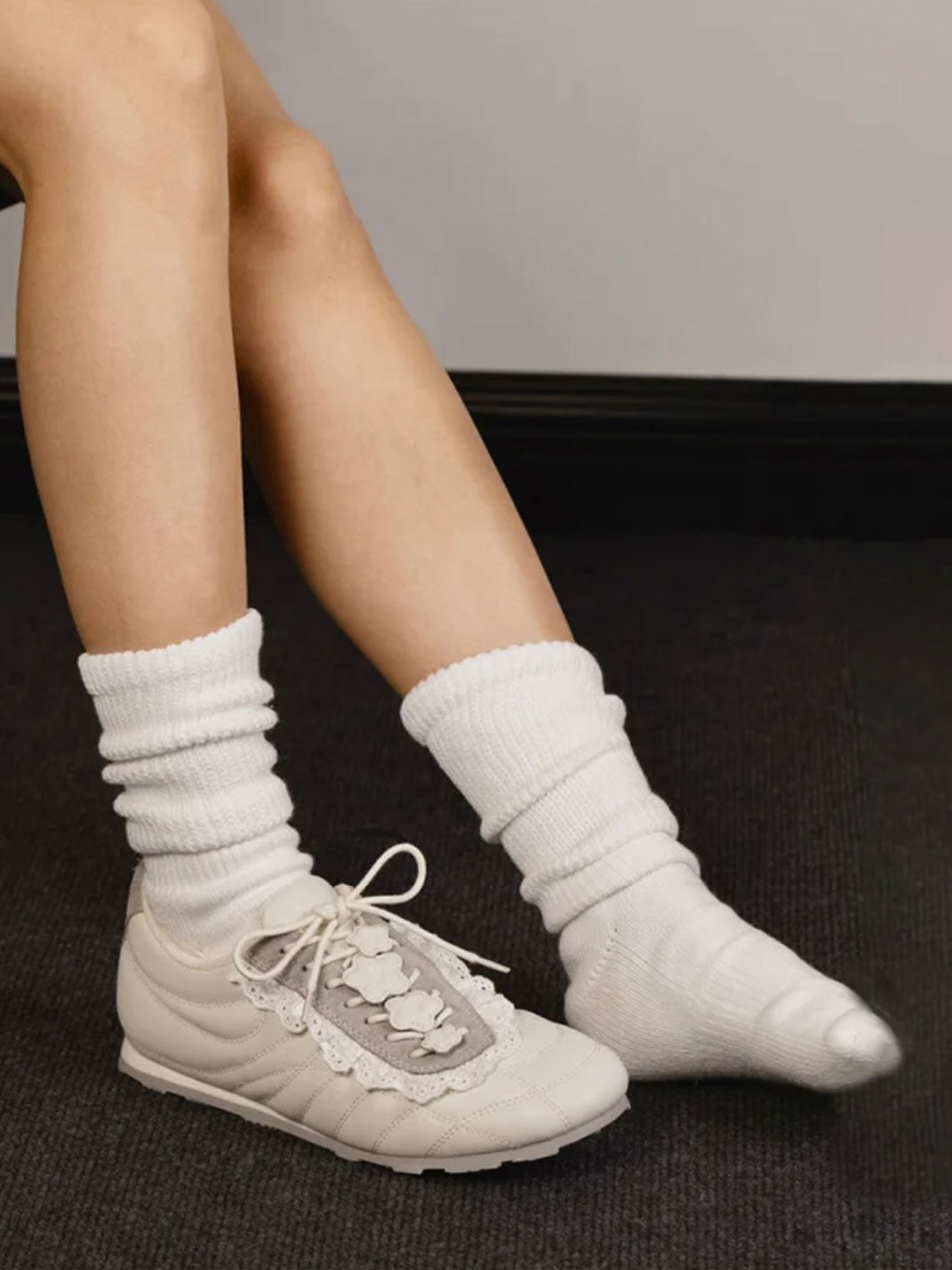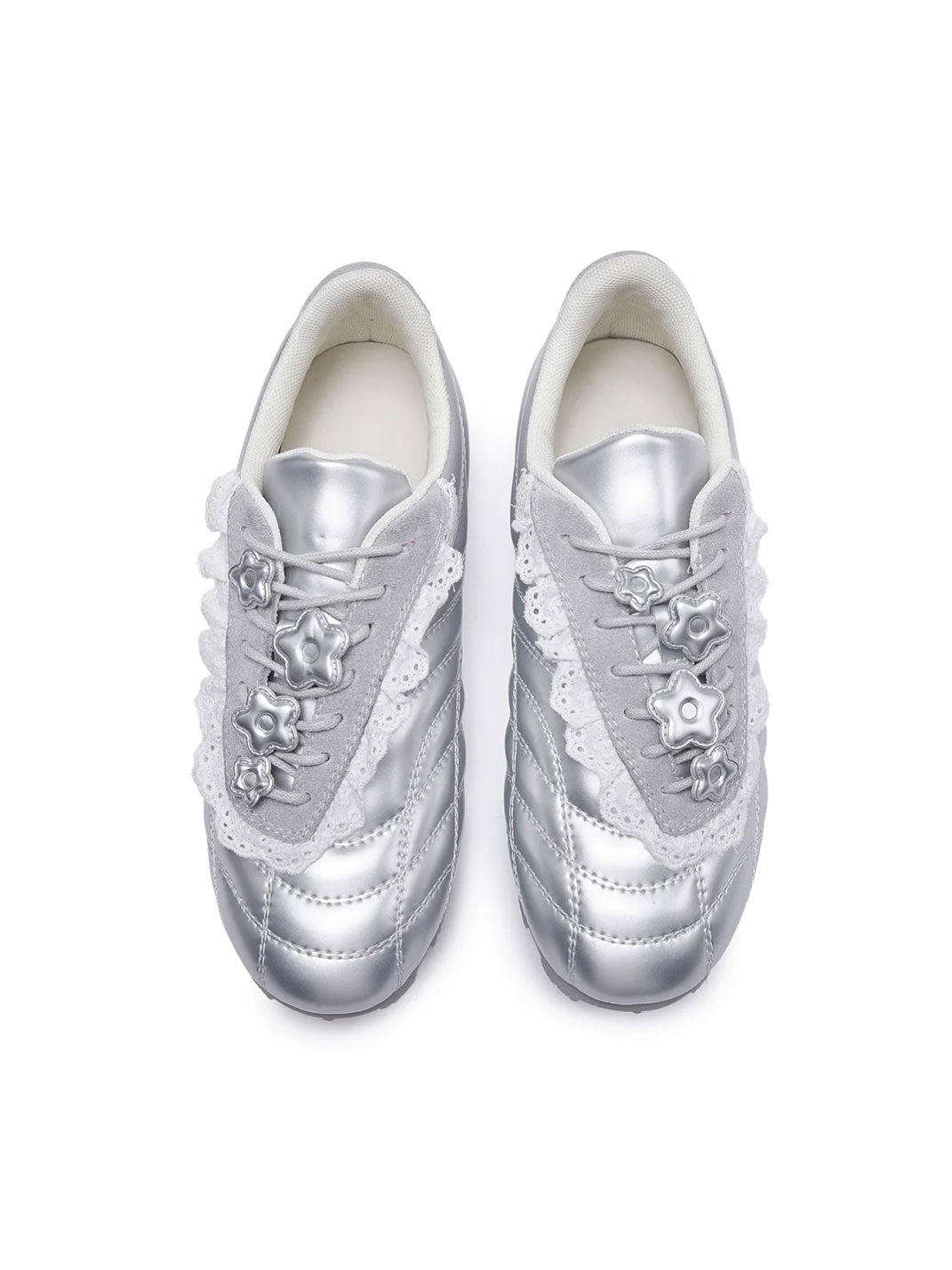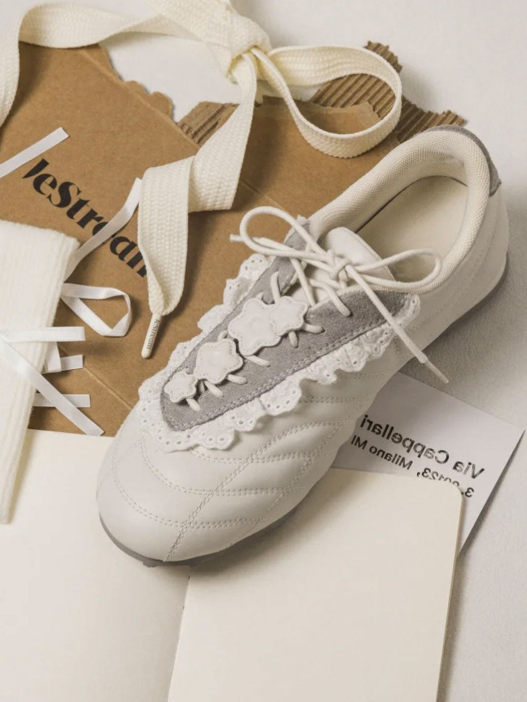 GIRLSHOME丨Lace-Trimmed Flower Detail Leather Sneakers コンテンツにスキップ