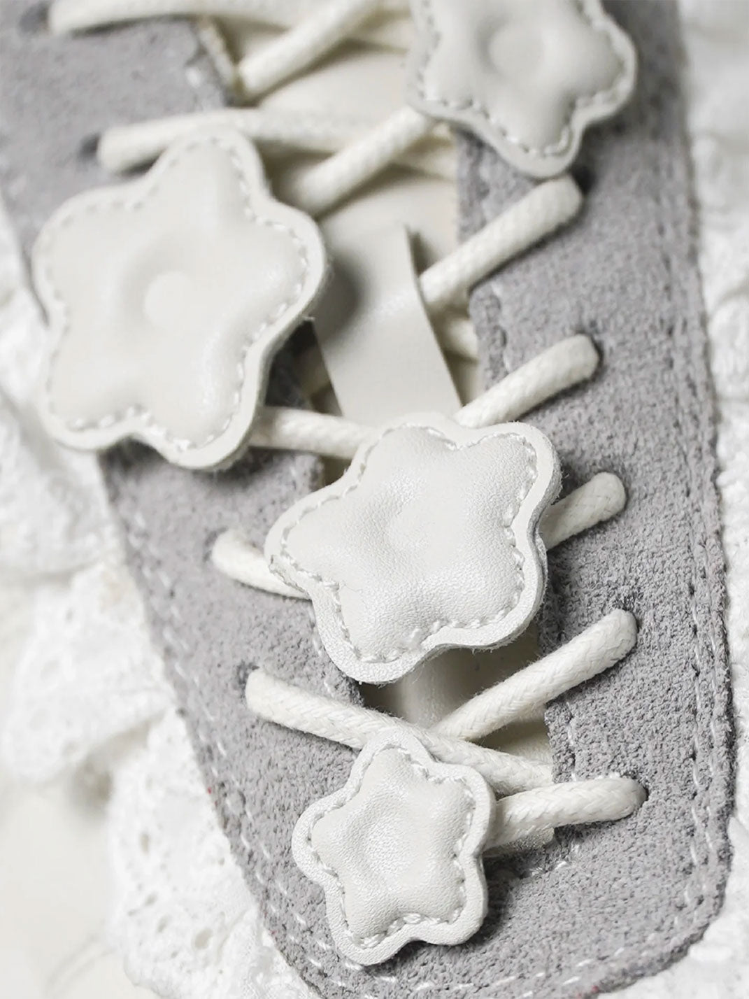 GIRLSHOME丨Lace-Trimmed Flower Detail Leather Sneakers