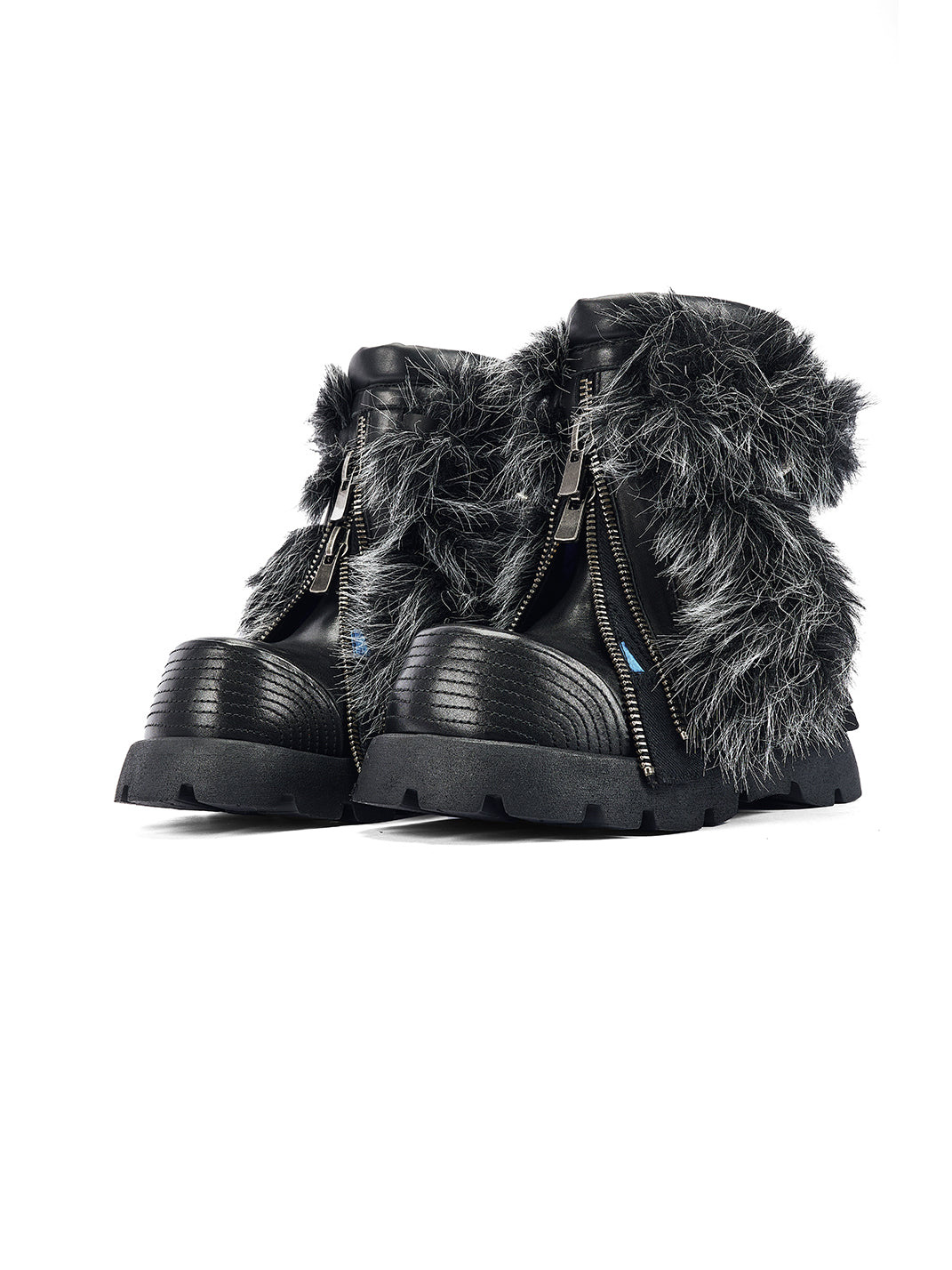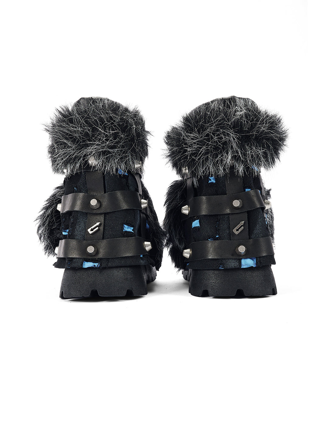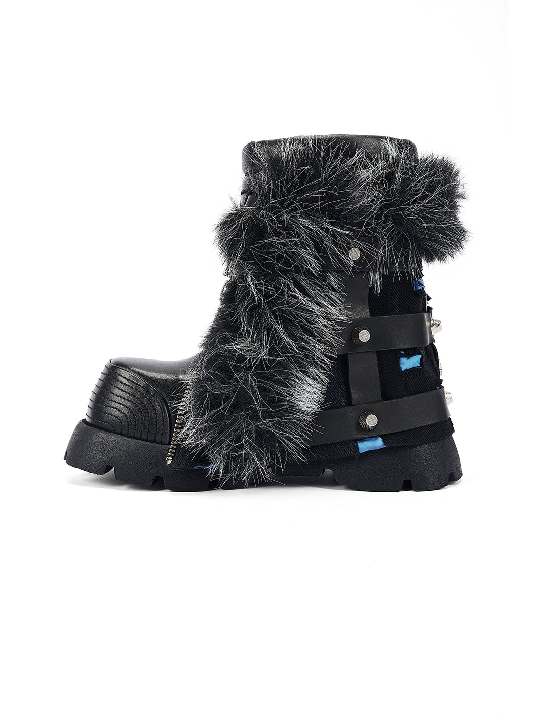 NEXT IMPULSIVE丨"Iron-Heart" Faux Fur Patchwork Boots - Black