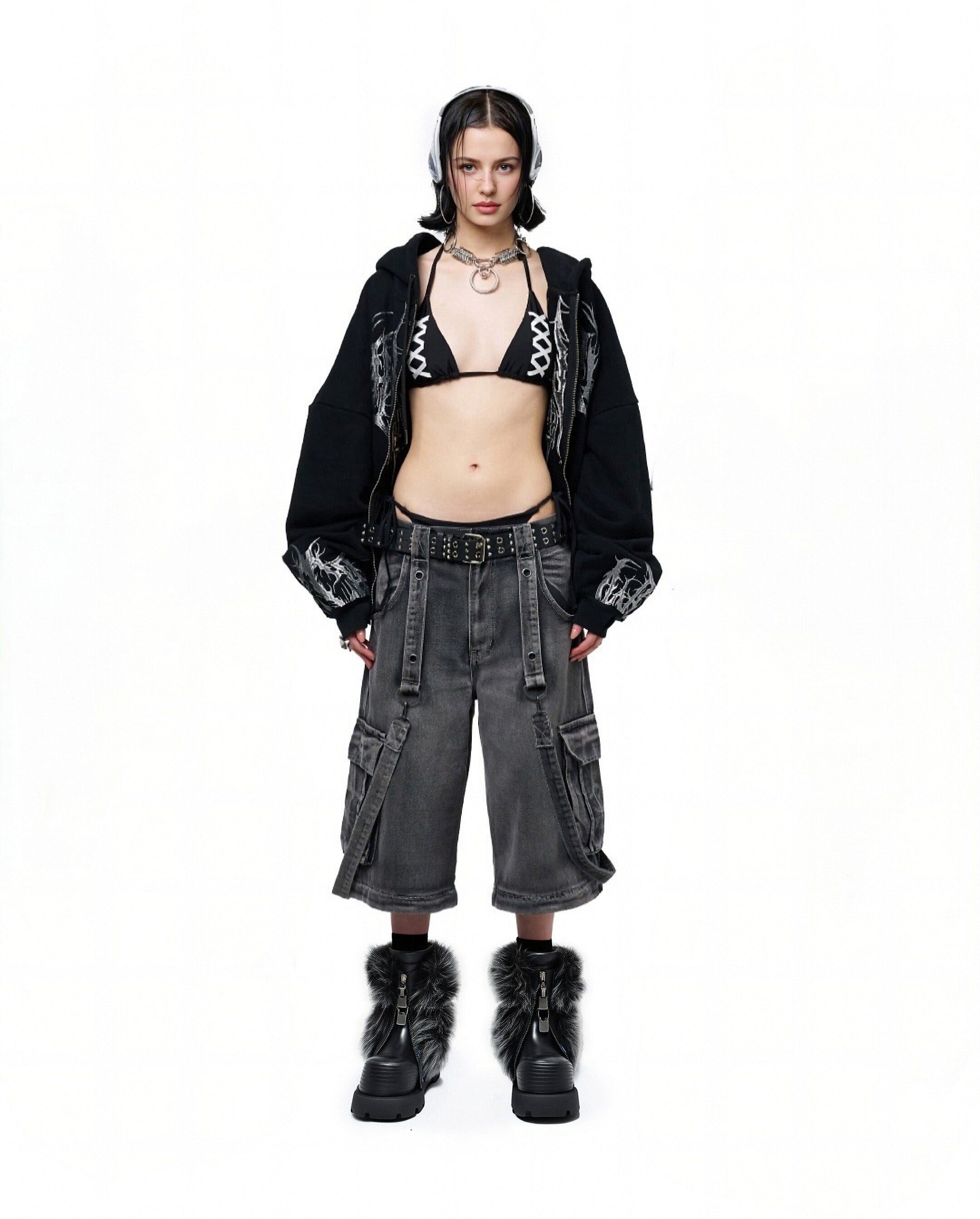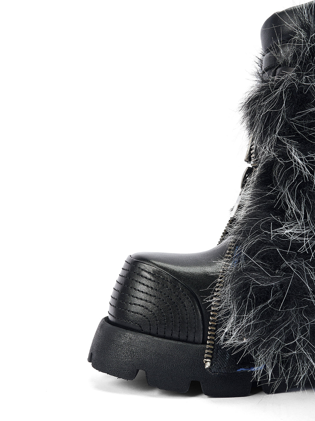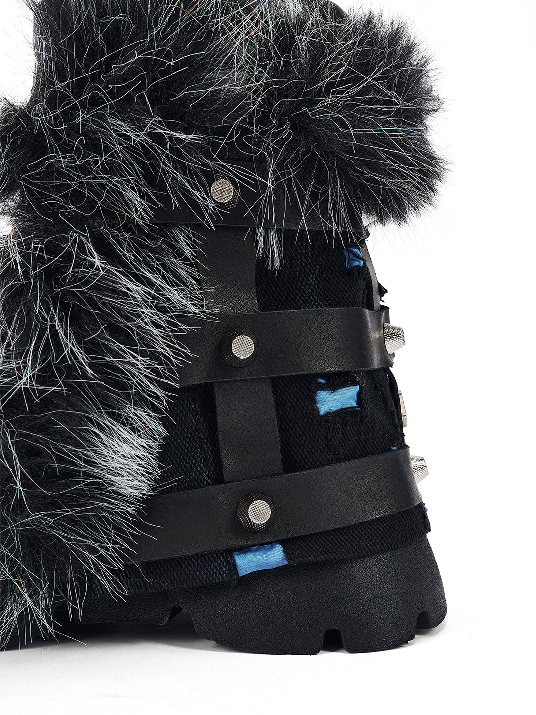 NEXT IMPULSIVE丨"Iron-Heart" Faux Fur Patchwork Boots - Black