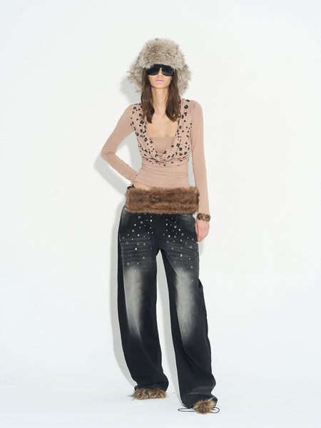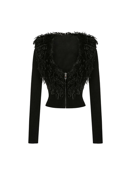 NOLA | Shearling V-Neck Knitted Zip-Up Jacket