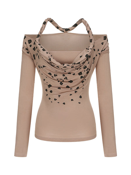 NOLA | Leopard Print Twist Drape Collar Blouse