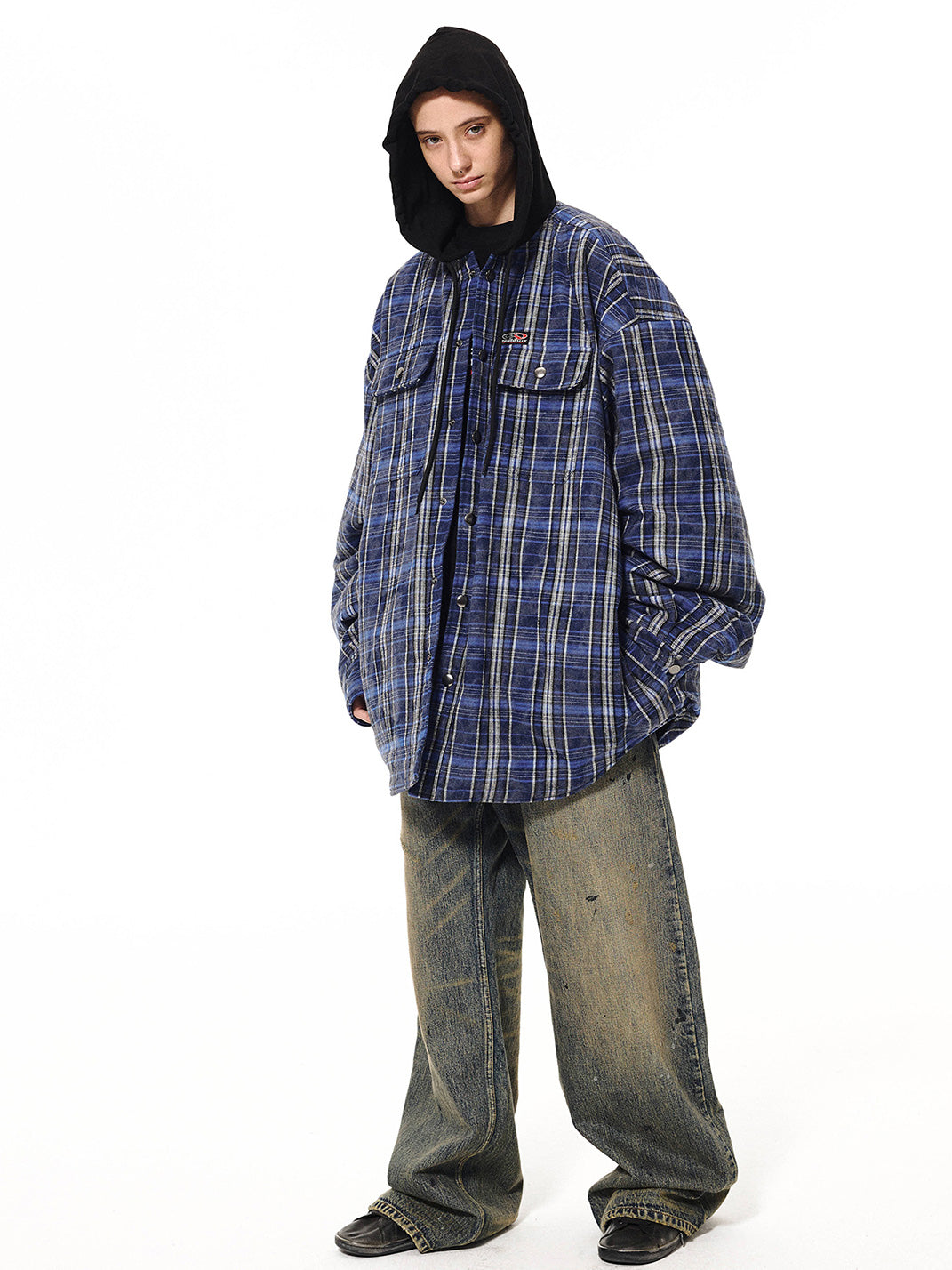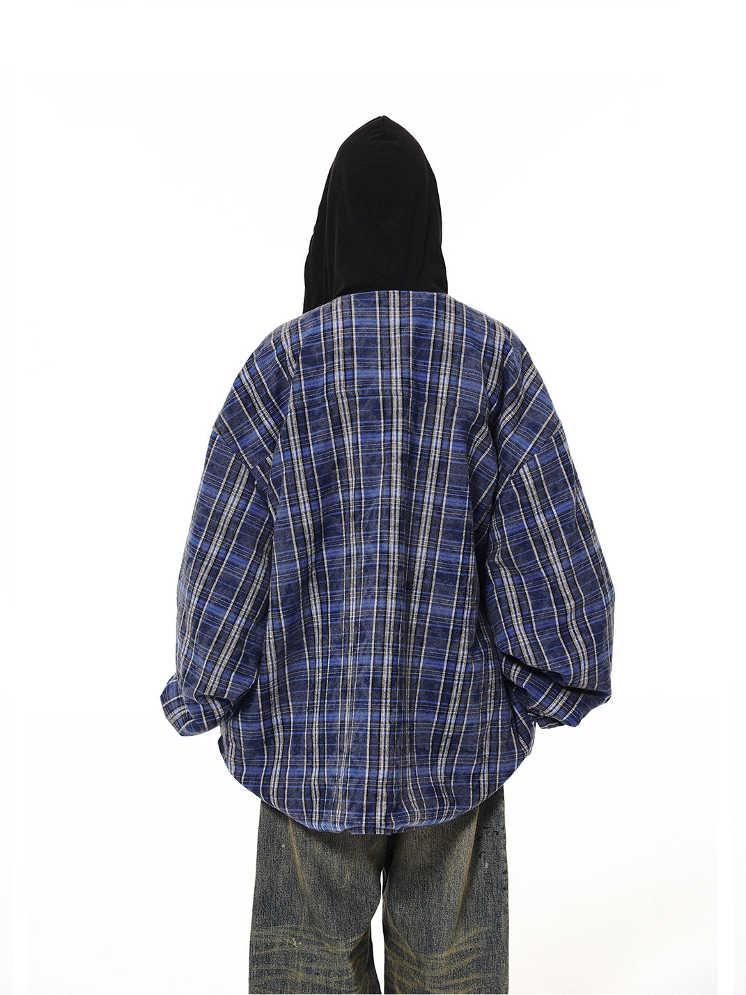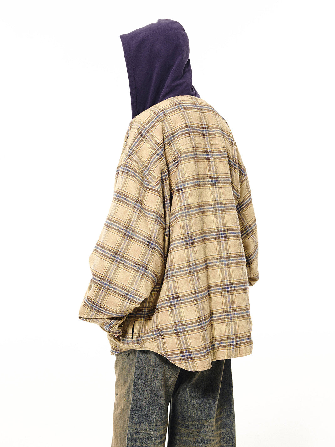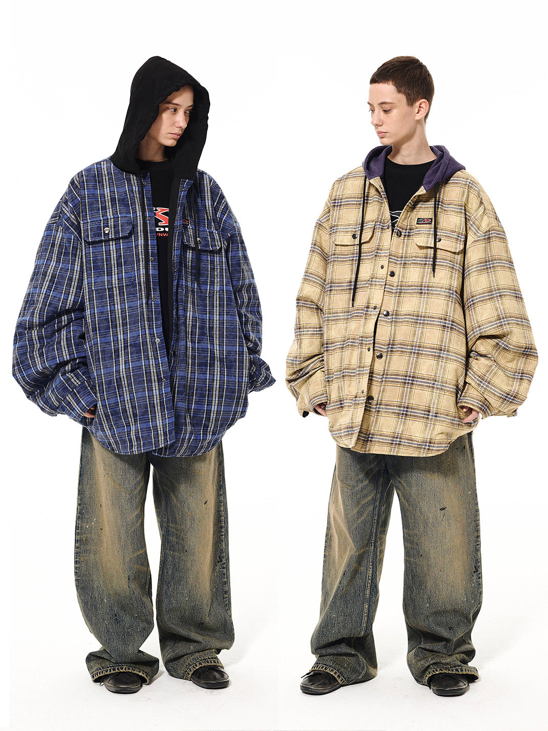 Crafted from brushed plaid fabric with a soft, lived-in texture, this piece combines casual comfort with a bold street-inspired attitude. Designed in a gender-neutral oversized silhouette, it layers effortlessly across styles and seasons.