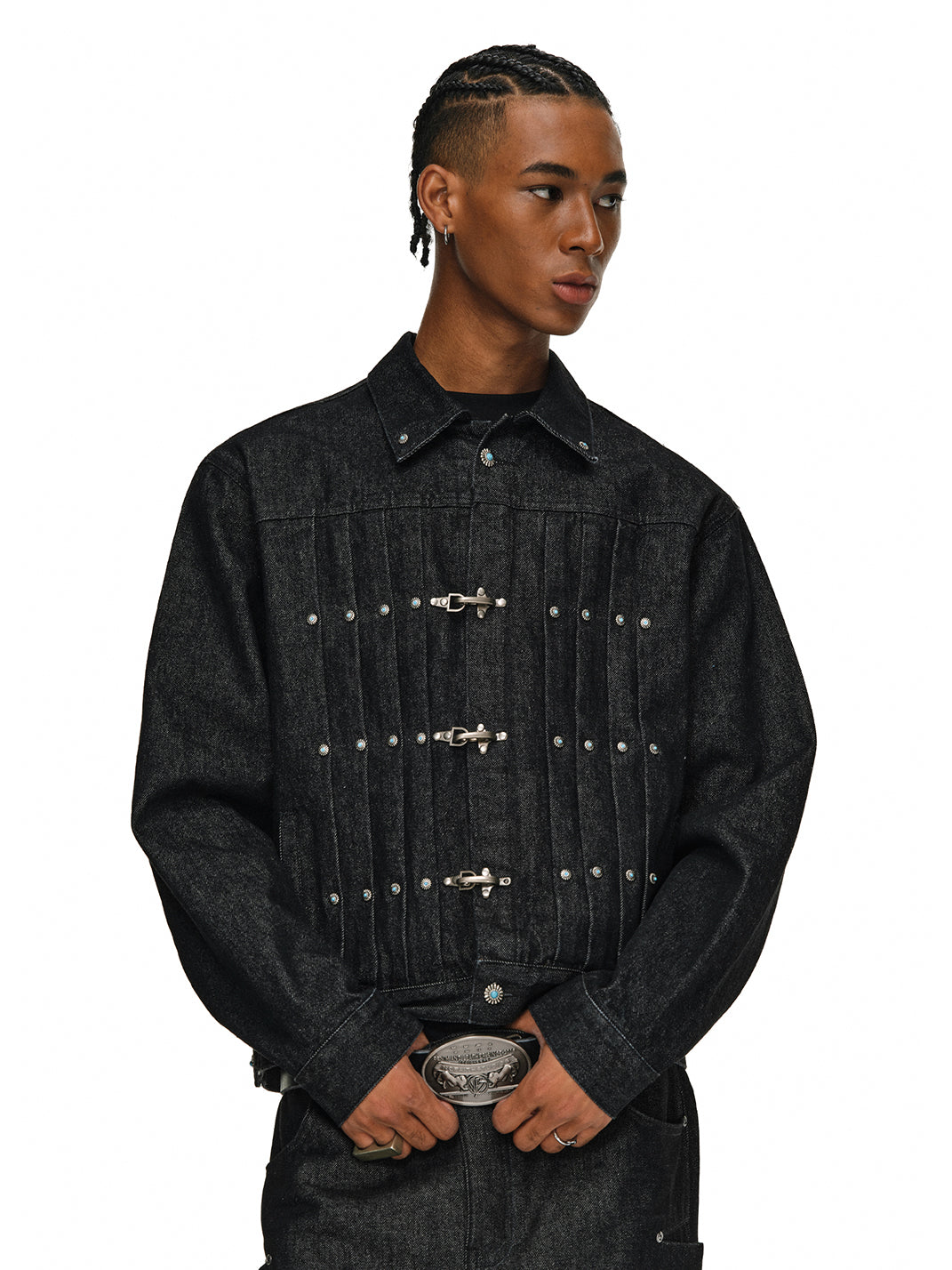 ANTIDOTE | Pleated Buckle Closure Denim Jacket