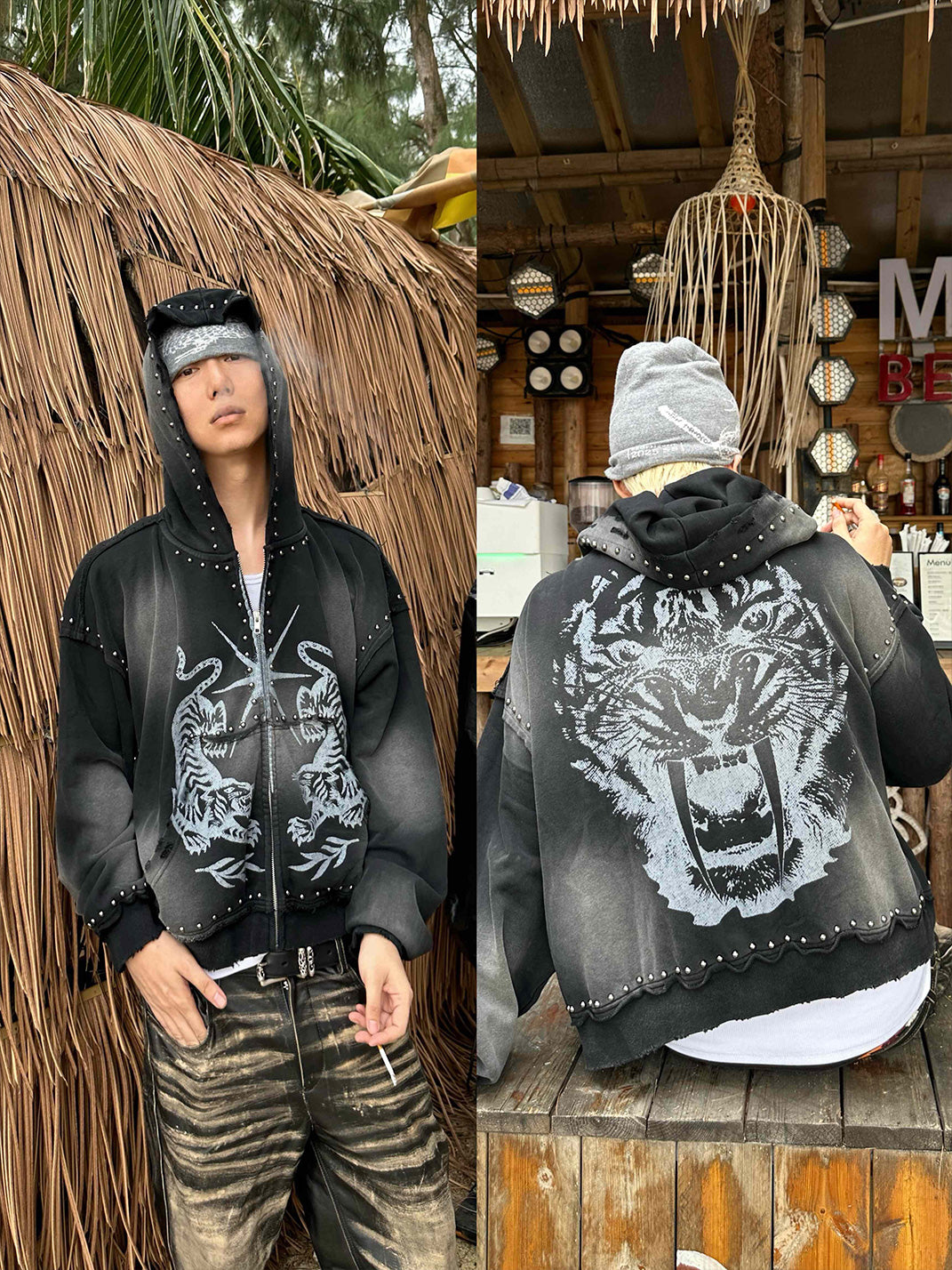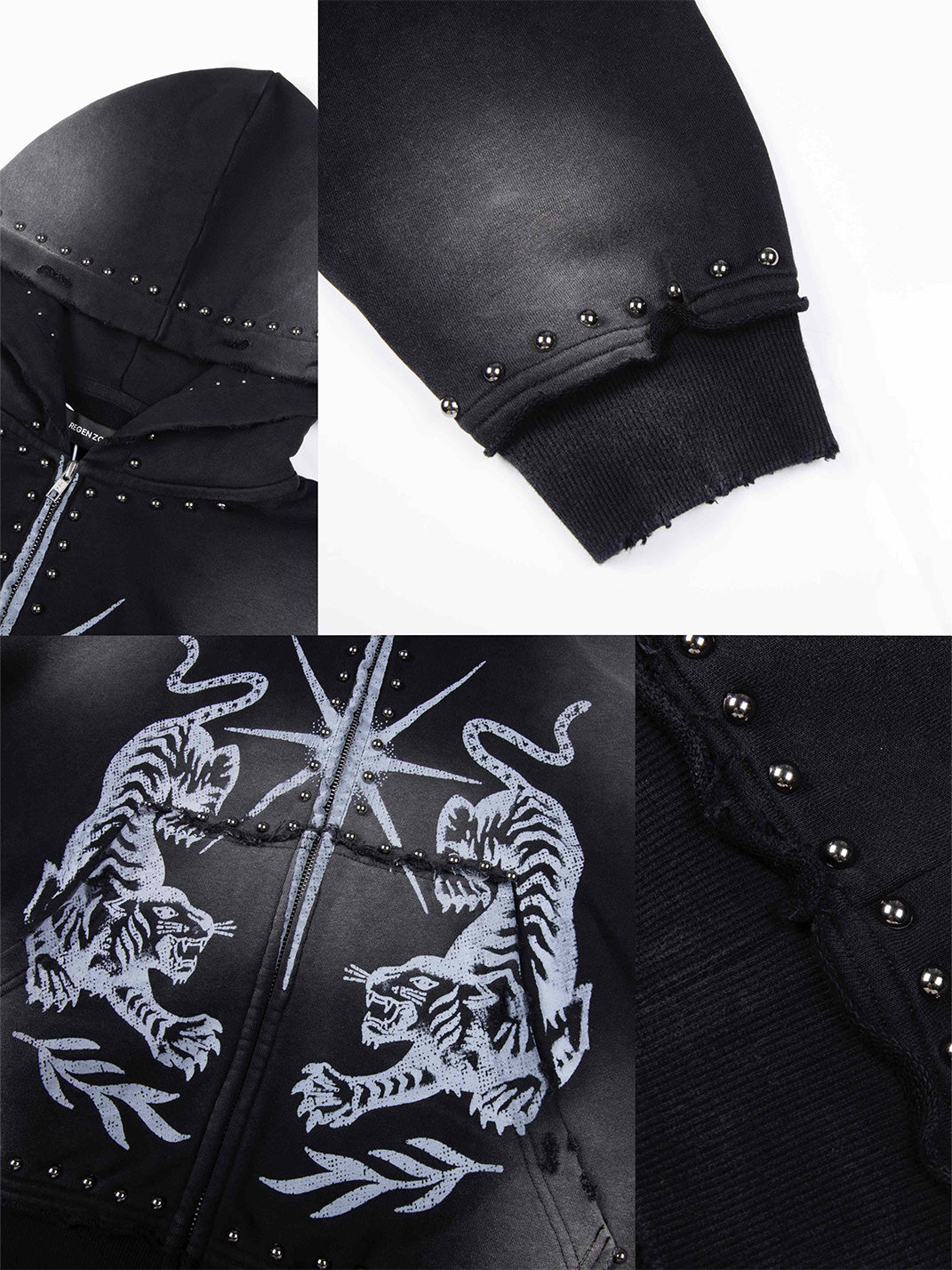REGEN ZONE | "TIGER" Rivet Zip Up Hoodie