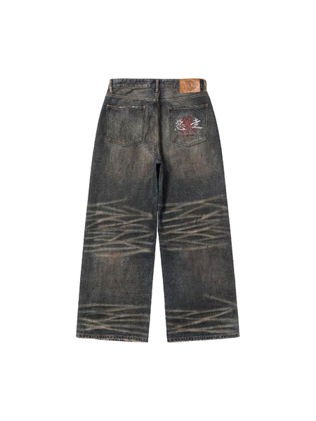 ヘビーディストレストブラッドウォッシュフレアジーンズ