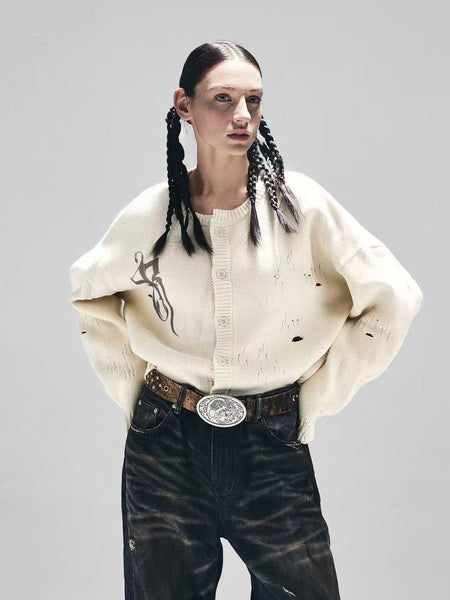 REGEN ZONE丨「RIOT」ラブアート パールホワイト ディストレストTシャツ